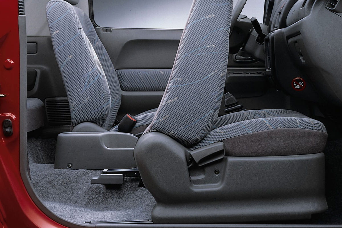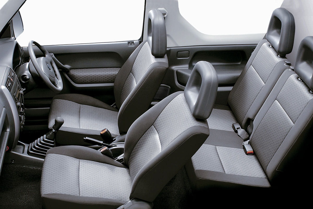 Hay tres tipos de carrocerías para el Jimmy, la convencional denominada “de techo metálico”, la de techo extraíble o la de techo de lona que podríamos considerar descapotable. En ambos casos el Jimny mide 3.66 metros de longitud y deja espacio solamente para cuatro plazas (2+2) que se hacen algo escasas incluso para piloto y acompañante altos. Su reducida capacidad de carga en el maletero (113 litros) se compensa por los huecos disponibles en el espartano habitáculo.