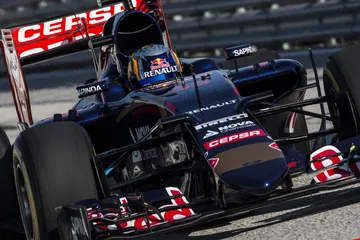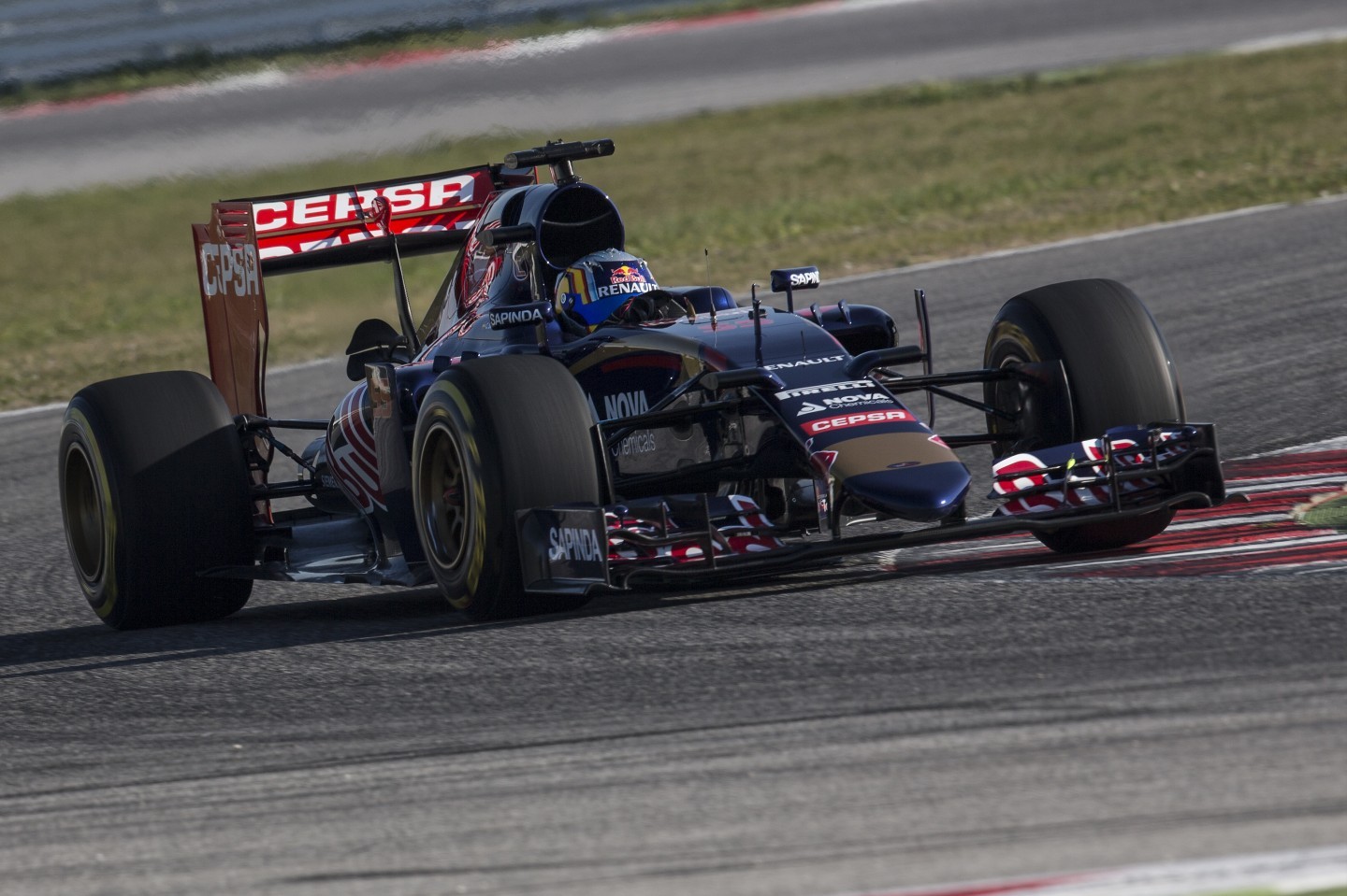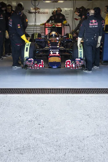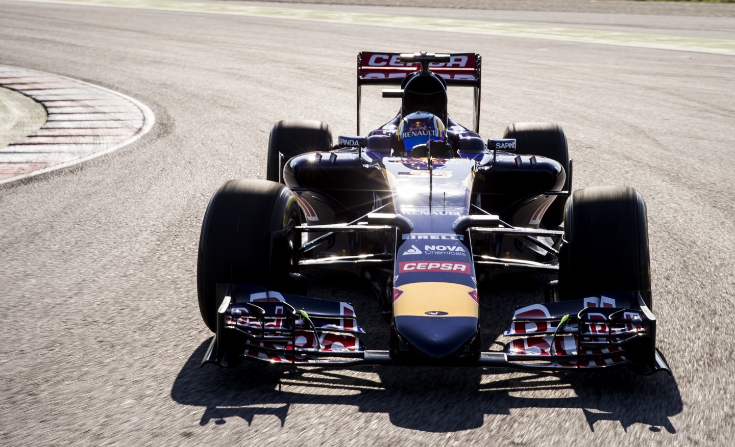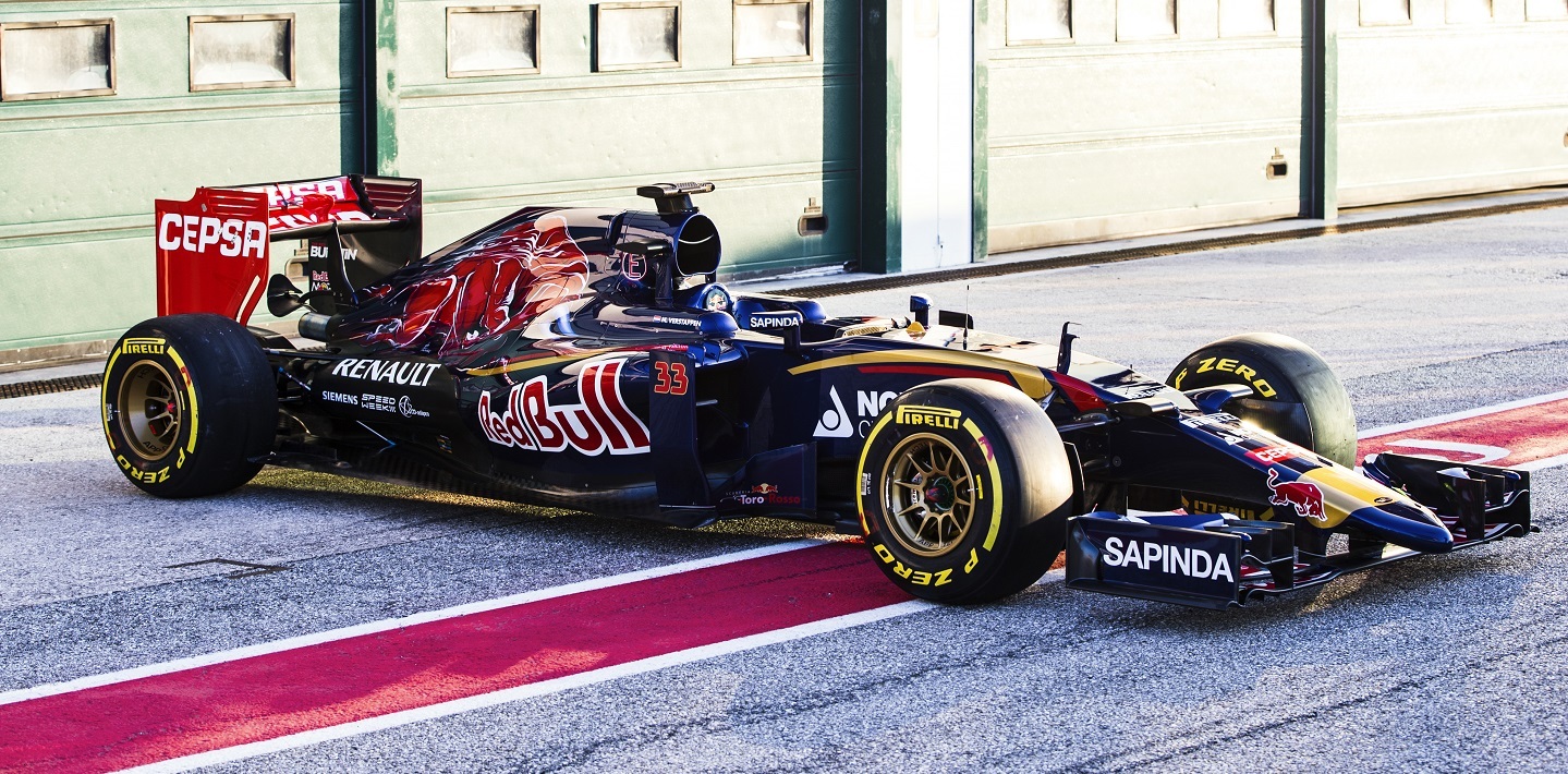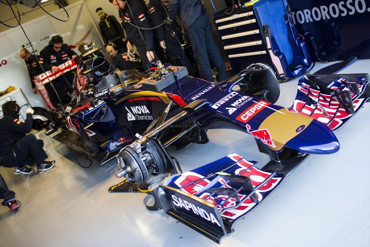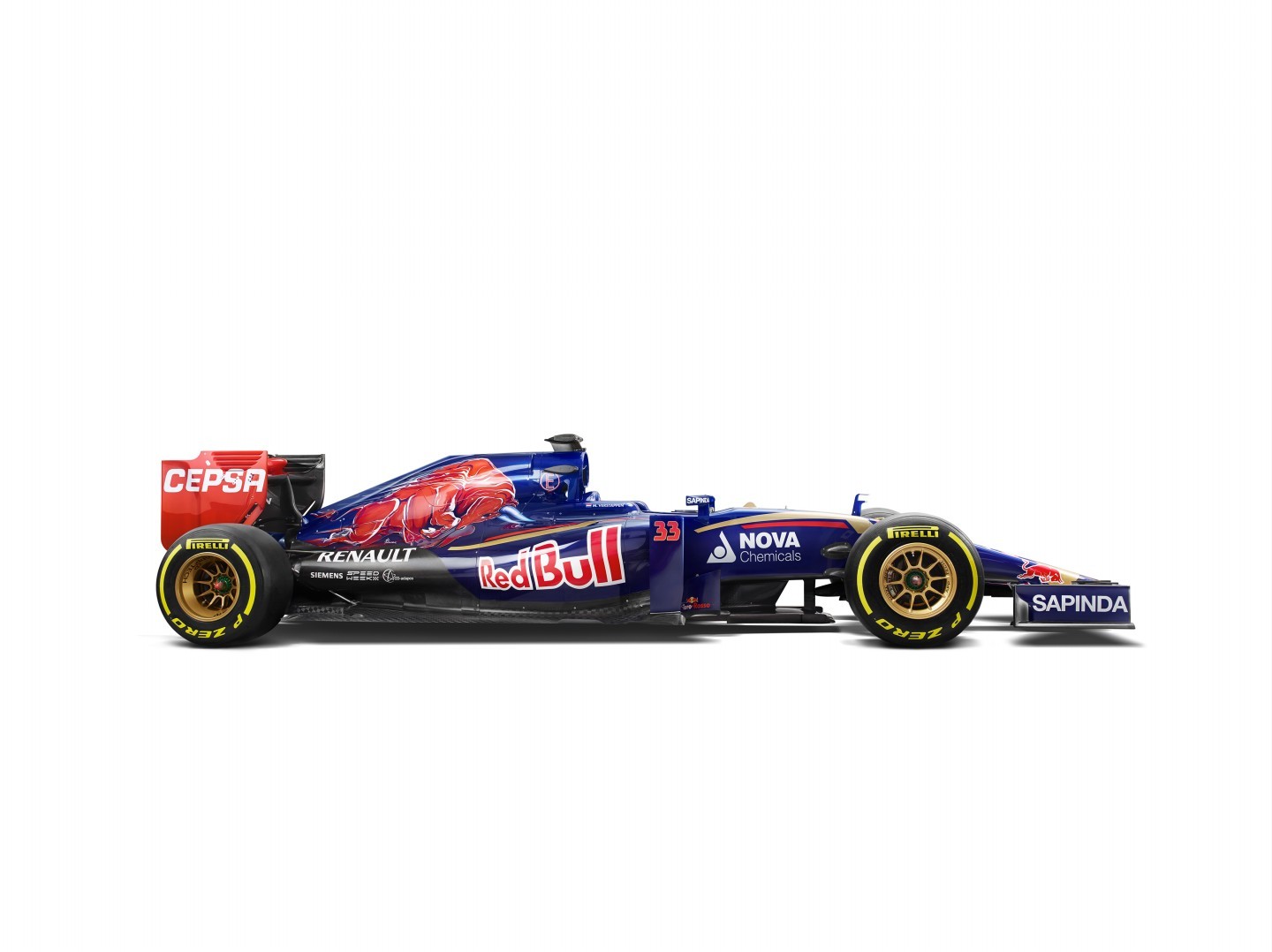 El alerón delantero también ha seguido recibiendo planos, imitando al que lució el W05 durante la pasada campaña y heredando también de los alemanes los cuernos que lucen sobre el morro del nuevo monoplaza de Mercedes AMG. Por su parte, la forma y tamaño de las entradas de aire de pontones y chimenea siguen inalterables siendo la eliminación de la horrorosa nariz el principal cambio. Recordemos que junto a Red Bull, Toro Rosso es la única escudería que seguirá montando los motores Renault después de que Lotus haya realizado su cambio a Mercedes-Benz.