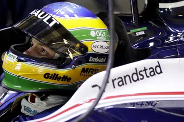 El casco de Senna vivió la sorpresa de Toleman, los primeros éxitos en Lotus, la creación de la leyenda en McLaren y el fin en Williams. Pero después de la desaparición del astro brasileño, su alargada sombra se extendió hacia aquellos que quisieron homenajearle. Rubens Barrichello fue el primero en hacerlo, en el primer Gran Premio de Brasil sin Senna, en 1995. El diseño era una variación del típico casco de Barrichello con el diseño del tricampeón en la zona normalmente roja de Rubinho.