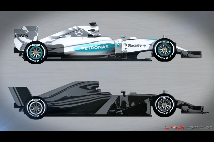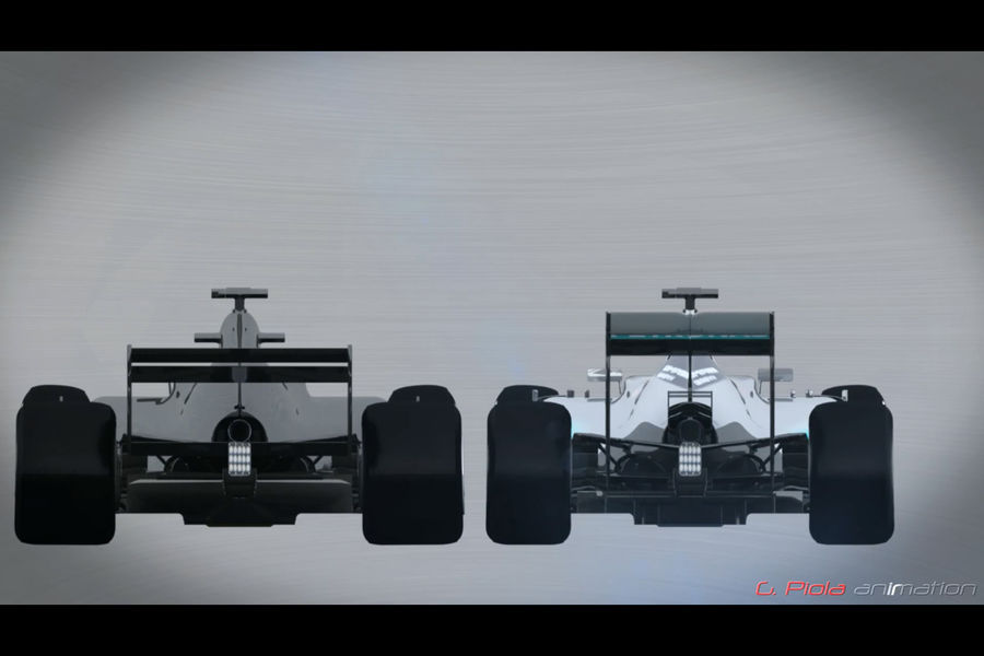 La utilización del ala trasera más ancha tiene más un objetivo visual que otra cosa (además de añadir algo más de carga), tratando de hacer la cola más agradable a unos aficionados a los que no les ha terminado de convencer el formato estrecho de dicho alerón que han lucido desde 2009. En cuanto a los cambios internos, ya se ha hablado de la posibilidad de reducir el peso trabajando en áreas como la caja de cambios y hacer los coches algo más potentes y ruidosos haciendo hincapié en los escapes. Gracias a Giorgio Piola y AMuS podemos ir haciéndonos una idea de cómo se verán con respecto a los de 2015.