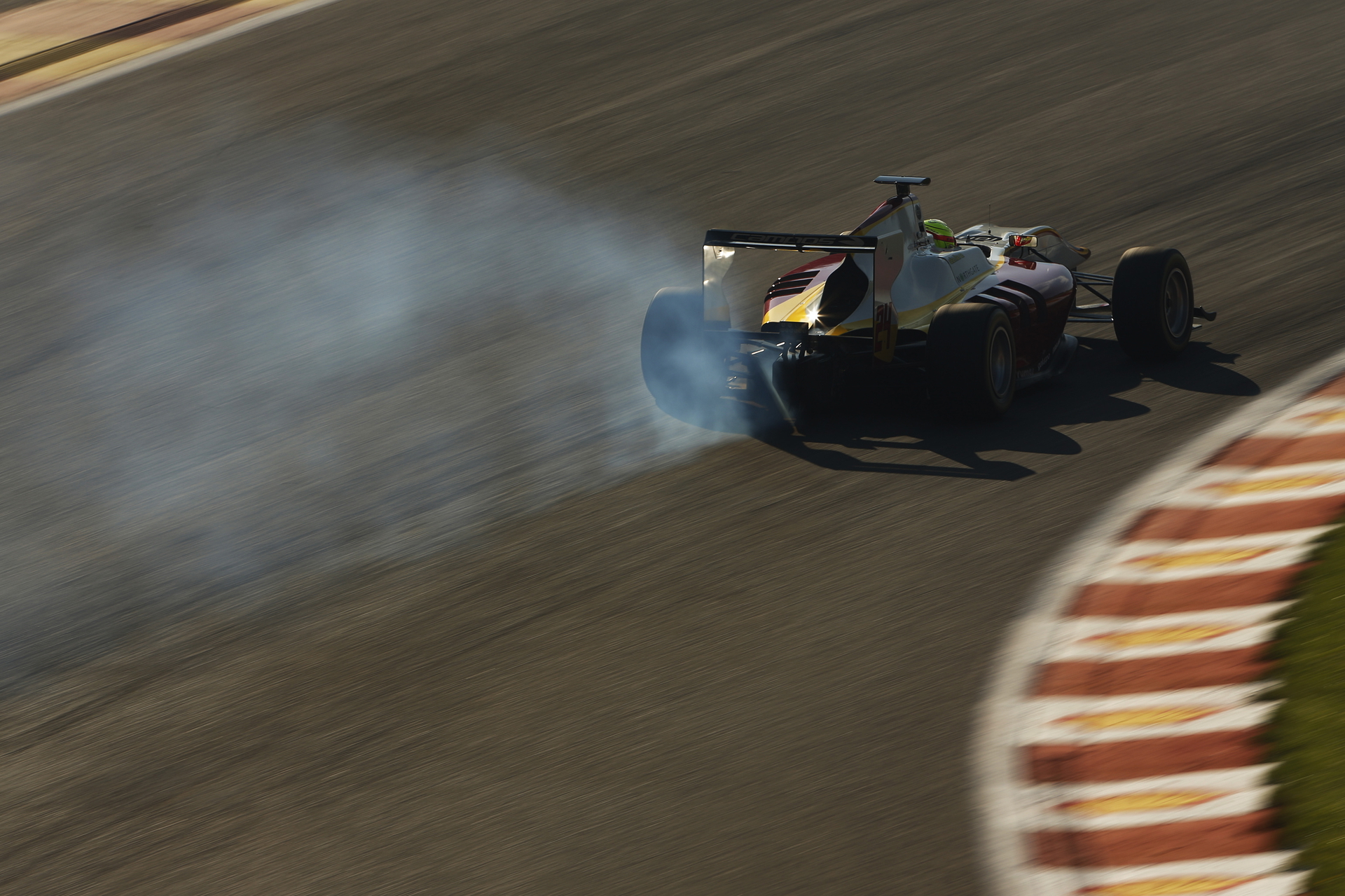 En la tercera vuelta, Jann Mardenborough tuvo un fuerte accidente en Eau Rouge, causando el inicio de un periodo de coche de seguridad virtual. Tras una vuelta y media de carrera neutralizada, esta quedó reiniciada en el segundo sector. Ghiotto parecía lanzado hacia Ocon después de adelantar a Bernstorff pero dirección de carrera le puso una penalización de cinco segundos por el roce a Ceccon. Por detrás, Álex Palou llevaba una buena progresión a pesar de su mala sesión clasificatoria, llegando a la décima posición.