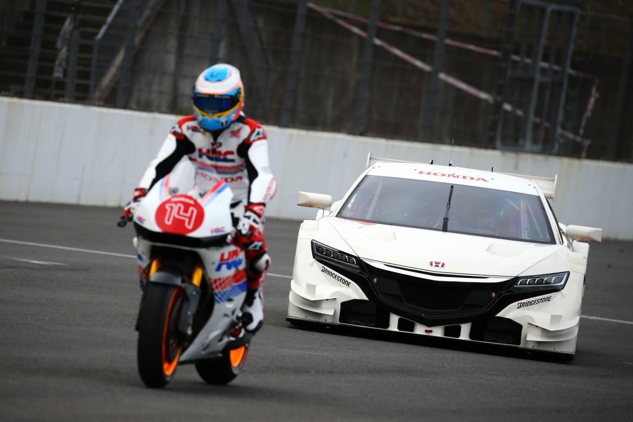 Además del intercambio de cascos entre Fernando Alonso y Márquez, HRC no ha dudado en poner a los mandos de la RC213V al asturiano, tal vez una forma de dar las gracias a su piloto tras una temporada para olvidar. Pero no fue lo único que probó Alonso ya que se volvió a sentar en el MP4/6 de Ayrton Senna e incluso rodó con el NSX GT500 del Super GT japonés.