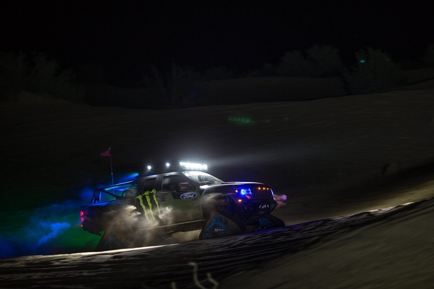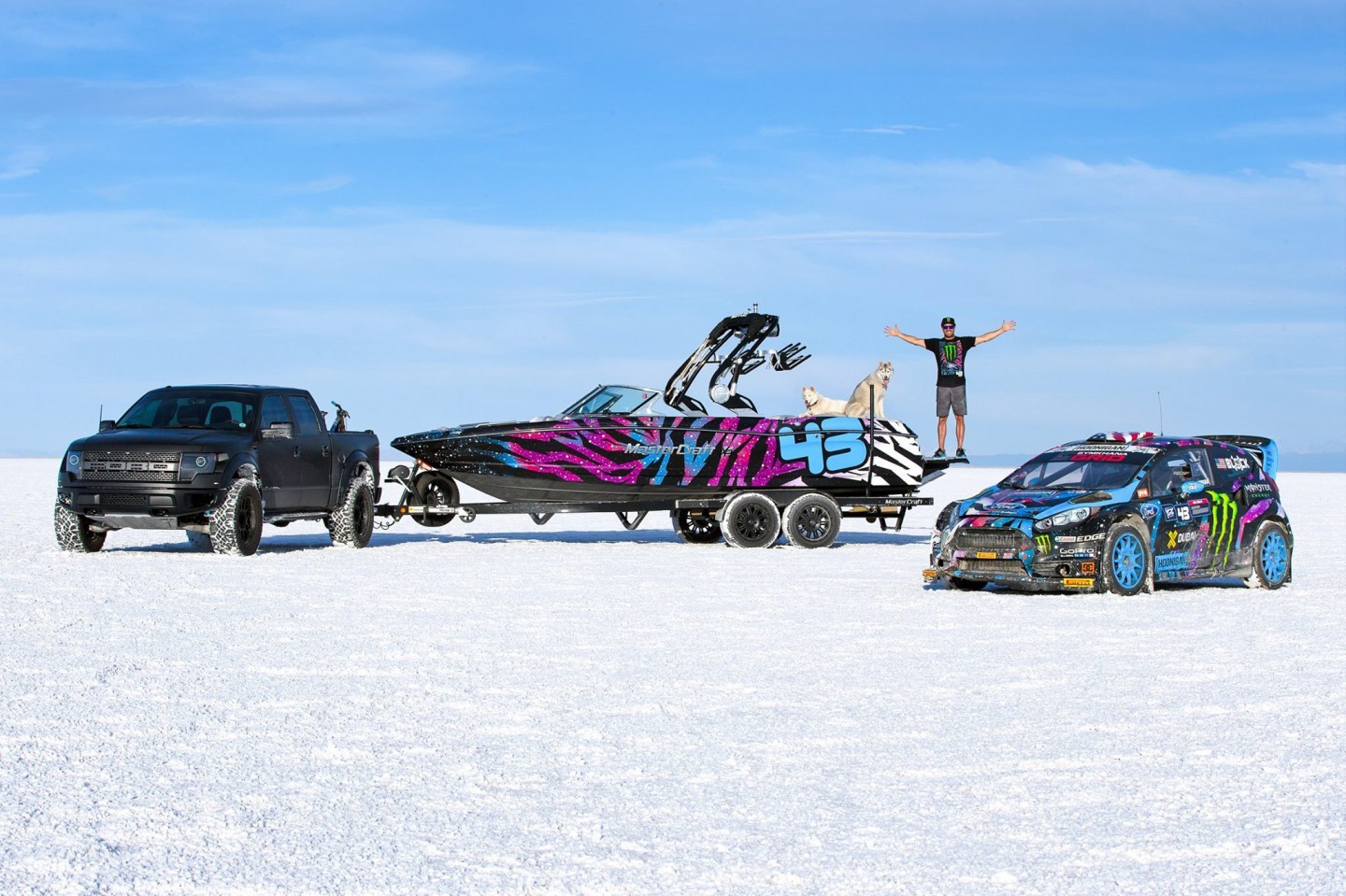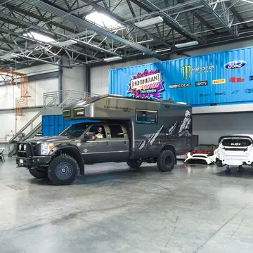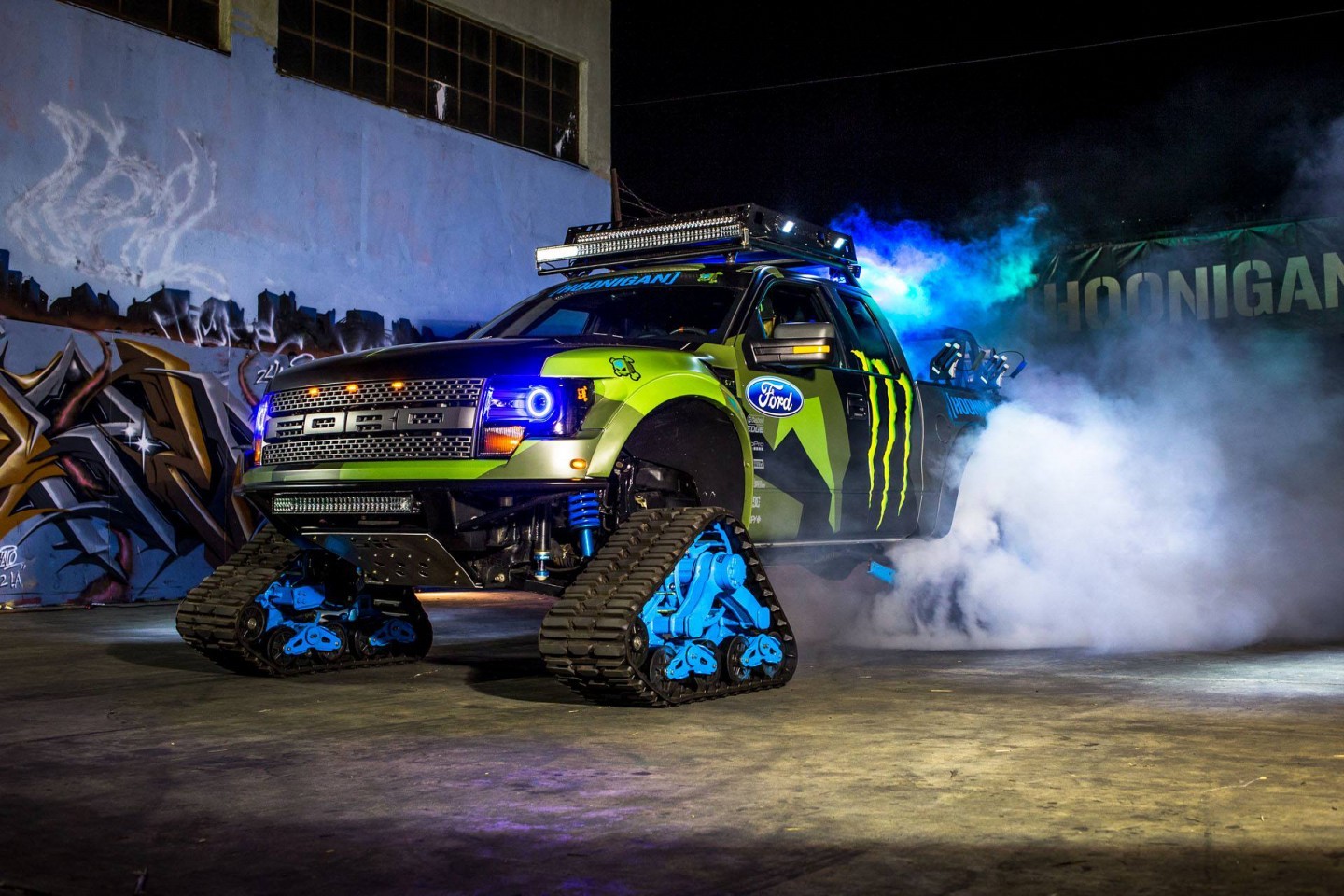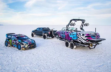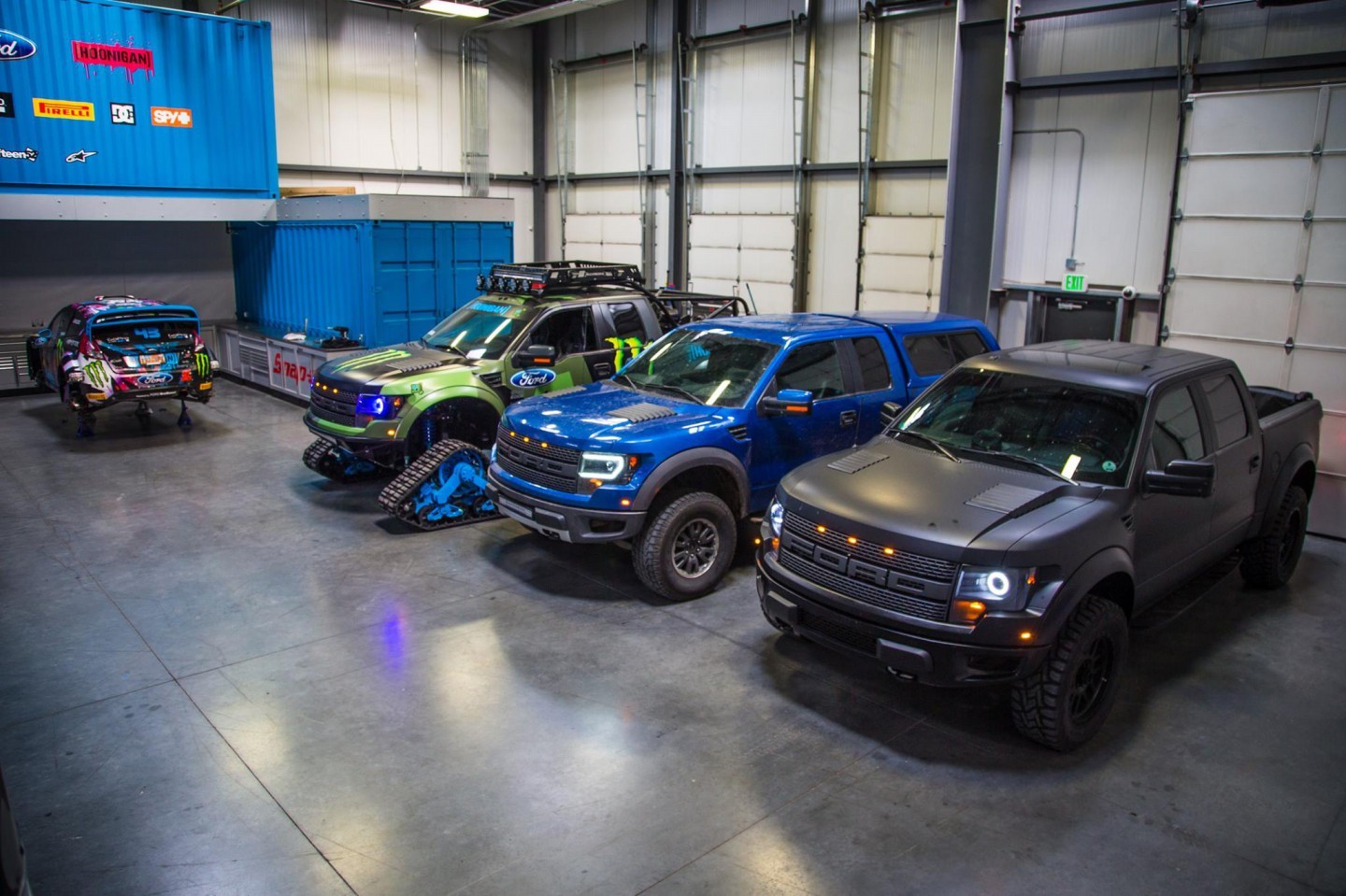 Y es que lejos de la traición que para muchos fue dejar de lado a Subaru para caer en los brazos de Ford, Block nunca ha sido un piloto que se pueda quejar de estar mal servido, tanto en los tramos de rallyes, en las pistas de RallyCross/Gymkhana o en su propio garaje. Actualmente, además de un Focus ST impoluto por supuesto entregado por Ford USA, Ken nos ha enseñado el espectacular F-150 RaptorTRAX con motor V8 de 6,2 Litros y equipado con unas impresionantes orugas que le permiten no preocuparse de las habituales nevadas que azotan el norte de Estados Unidos durante el Invierno y que pueden apartarle de su otro pasatiempo preferido, esquiar.