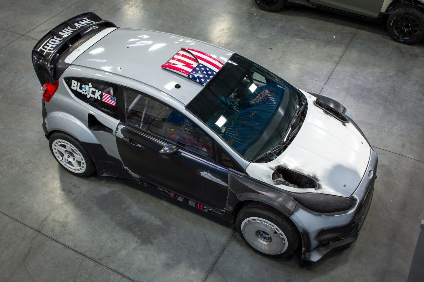 El coche era transformado también para competir en Rally America, campeonato en el que también Block dejaba de ser piloto Subaru para fichar por Ford. Al no tener que cumplir con la reglamentación FIA, el Ford Fiesta podía ir con un motor 2.0 turbo y una brida que restringiera el paso del aire y por tanto la potencia a la hora de encarar los tramos. Lo más curioso de este modelo es que la base utilizada era la de la versión cinco puertas, en lugar de la de tres sobre la que se hizo el Fiesta RS WRC que debutó en el Mundial en 2011. Había más espacio para colocar los radiadores en la zona trasera y se mejoraba el reparto de pesos.