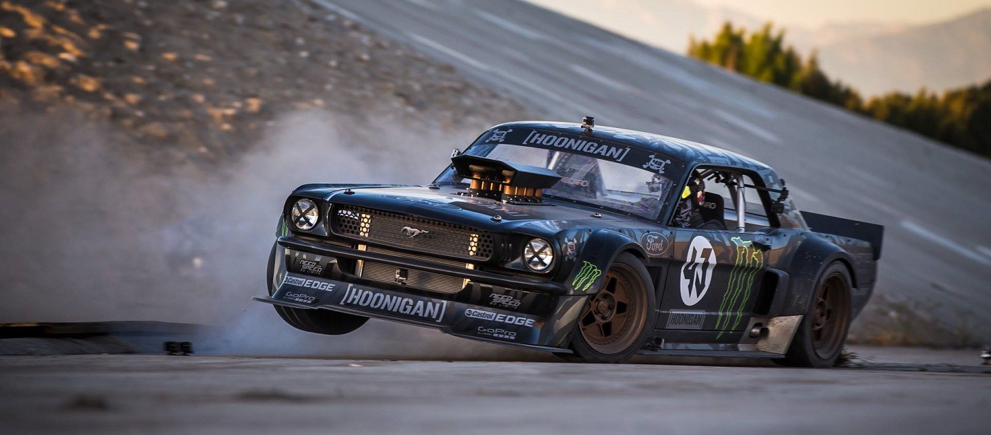 Tras fallar a su cita habitual en verano, los rumores empezaron a correr como la pólvora: hay un Mustang con tracción a las cuatro ruedas quemando rueda por las calles de Los Ángeles. Algo así sólo podía ser idea de Block. Y así se confirmó unas semanas después. Ken había buscado durante años su ‘Hoonicorn’ pero por muchos coches que había conducido nunca llegó a encontrarlo. Es por ello que mandó construirse uno a medida. Se dice, se comenta, que se gastó casi un millón de dólares en transformar este Mustang del 65 en un híbrido entre un muscle car con estética DTM, motor de NASCAR y estilo de pilotaje similar al de un World Rally Car.