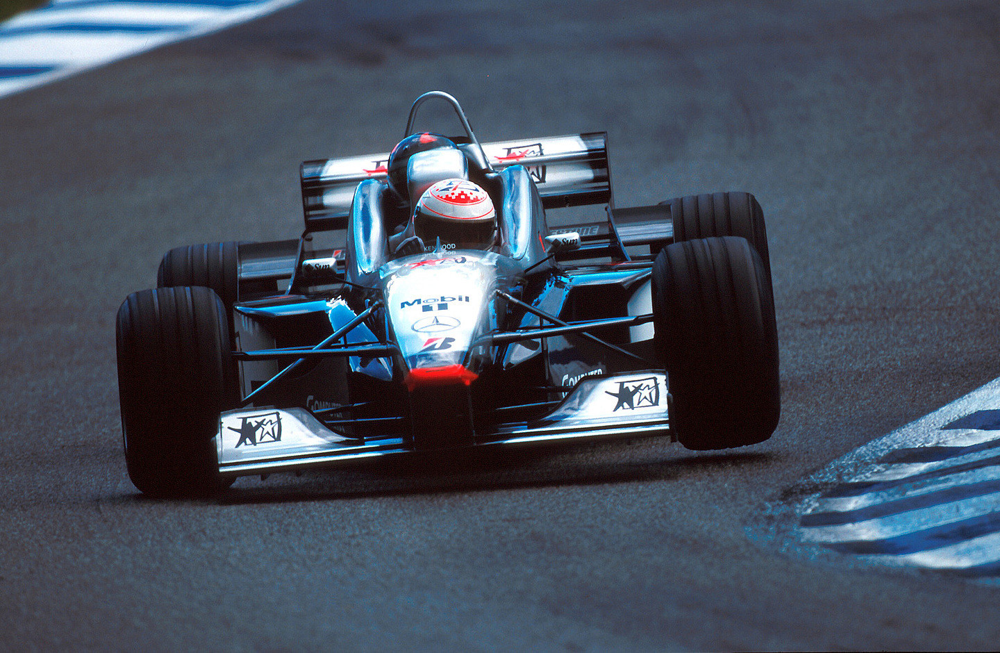 Con el tiempo, el piloto británico perdió el apoyo de Marlboro y eso «limpió» el diseño de su casco. Año tras año, las líneas laterales fueron estilizándose hasta que en 1995 dejaron las formas rectas y adoptaron unas sensuales curvas que le dieron un aire más moderno al viejo diseño creado una década antes. También añadió a la vacía parte superior una «B» mayúscula con un diseño propio, en color azul, en alusión a la inicial de su apellido. Finalmente, en 1996 añadió una «tira» dorada en el tradicional espacio Marlboro pero para otra tabacalera: Benson & Hedges.