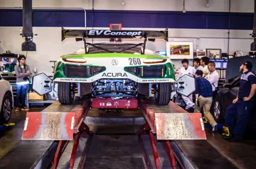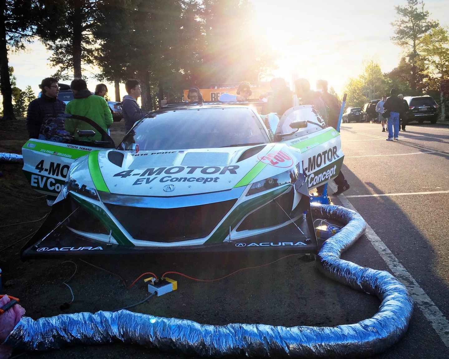 La estética nos recuerda en parte al Peugeot 208 T16 PPIHC con el que Loeb consiguió el record que todavía sigue vigente en la Subida hacia las nubes, con grandes aditamentos aerodinámicos, un alerón trasero sobredimensionado y un gran spoiler frontal. Por lo que podemos ver en la decoración que utilizará el próximo fin de semana del 25 al 26 de junio, será Tetsuya Yamano el que se encargará de llevarlo hasta lo más alto, a 4.303 metros sobre el nivel del mar. Aunque desde luego, las ruedas con las que se le ha visto por primera vez parecen difícilmente las que utilizarán para tratar de ganar su categoría, la de eléctricos modificados.