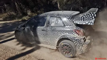 Con marcas en su carrocería, testigos de los cientos de kilómetros acumulados en tierras españolas, los pasos de rueda remendados con ese eterno compañero en competición que es la cinta americana y el inamovible y misterioso mensaje en la ventanilla trasera en forma de fórmula matemática cuyo resultado no es otro que infinito. Toyota GAZOO Racing sigue en España sumando días de test con Juho Hänninen a la cabeza, dejando sensaciones aún mejores que las desprendidas en los primeros test.