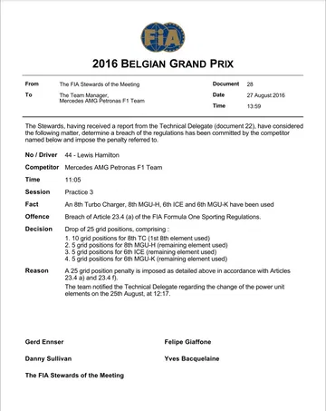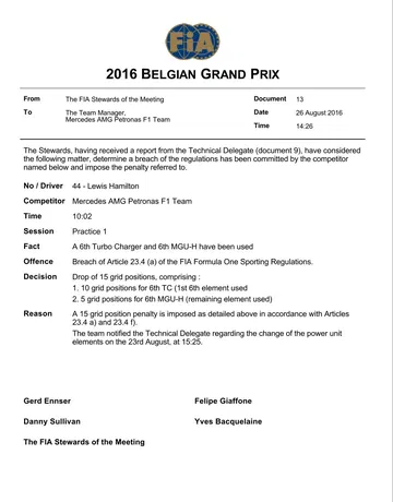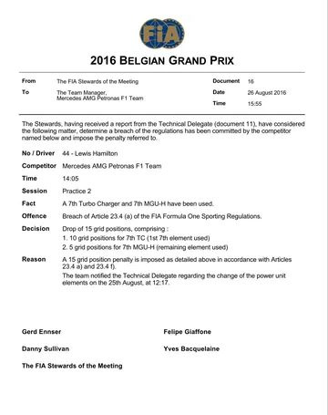 Lo que estamos viendo este fin de semana en el circuito de Spa-Francorchamps carece de sentido. La normativa sobre la sustitución de partes de la unidad de potencia fue modificada respecto a la de 2015 para evitar esperpentos como el de ver a un piloto salir desde el fondo de la parrilla e incluso posteriormente tener que pasar por boxes para hacer un Stop & Go con el que cumplir el resto de su penalización. Sin embargo, este año se ha conseguido un efecto aún más perjudicial para el campeonato, o que al menos genera aún más desigualdad entre equipos grandes y pequeños.