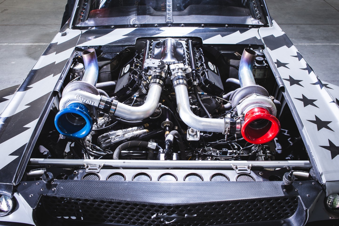 En el caso de Ken Block, parece que se cumplen los tres requisitos, ya que no ha pasado más de un año hasta que el estadounidense ha decidido actualizar su Hoonicorn RTR a las Specs.II casi como si se tratara de un paquete de contenido descargable para un videojuego. Y lo cierto es que las cifras asustan. Si la versión original de este Mustang del 65 con alma de coche de rallycross/WRC ya era capaz de entregar hasta 845 CV de potencia con tracción a las cuatro ruedas, la evolución se dispara hasta los 1.400, aprovechando la introducción de dos turbos que terminan de borrar el poco ADN puramente americano que aportaba el brutal bloque V8 atmosférico a esta especie de engendro, brillante engendro si se me permite puntualizar.