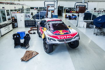 Manteniendo el blanco como base y las líneas características de Peugeot Sport, el equipo de diseño ha fusionado los colores de Red Bull en los laterales y ha hecho lo propio con el logo en la trasera de la marca austriaca y con el de la firma de lubricantes TOTAL en la delantera, añadiéndolos a través de un degradado ajedrezado que ayuda a incorporarlo en la llamativa decoración que lucirán los cuatro 3008 DKR oficiales el próximo 2 de enero en Asunción.