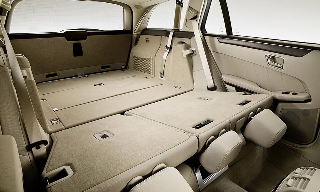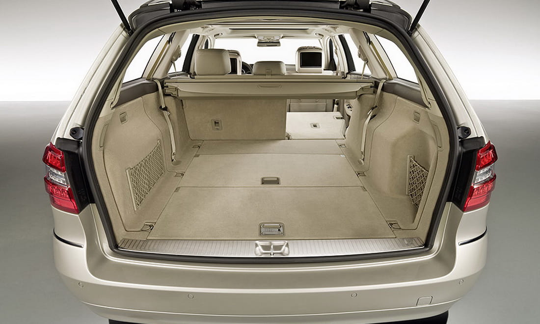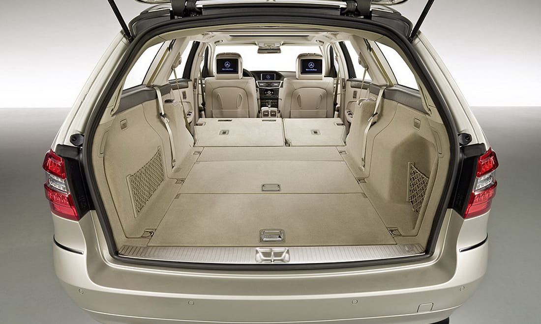 El juego del Clase E Estate consiste en la capacidad de carga añadida a su transporte de cinco pasajeros como máximo. Finalmente serán 690 litros de volumen de carga los que se puedan introducir en el maletero sin abatir los asientos, la misma medida que en la generación anterior. Está claro que esta carga está facilitada por su amplio portón y sus capacidades de expansión permiten deshacerse del asiento posterior, formar una superficie plana con él y alcanzar los 1.950 litros de volumen.