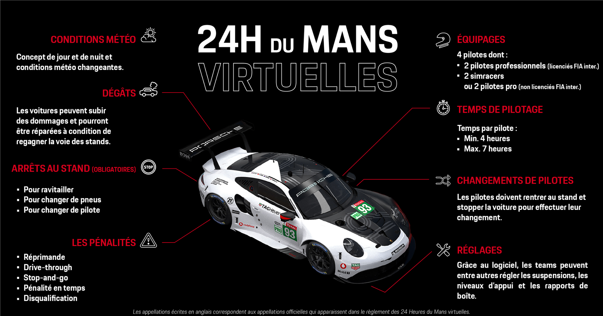 La plataforma será rFactor 2 y en total habrá hasta 200 pilotos repartidos (115 reales y 85 virtuales) en dos categorías, la primera, que será una especie de LMP1 pero utilizando el ORECA 07 LMP2, y la segunda los GTE, en la que sí que estarán representados los cuatro vehículos que compiten habitualmente en la clase. Miguel Molina, Dani Juncadella, Fernando Alonso o el Sim Racer de Williams Rebellion, Alex Arana serán los cuatro pilotos españoles que tomarán parte de una competición en la que curiosamente ByKolles ha obtenido la pole hace solo unos minutos.