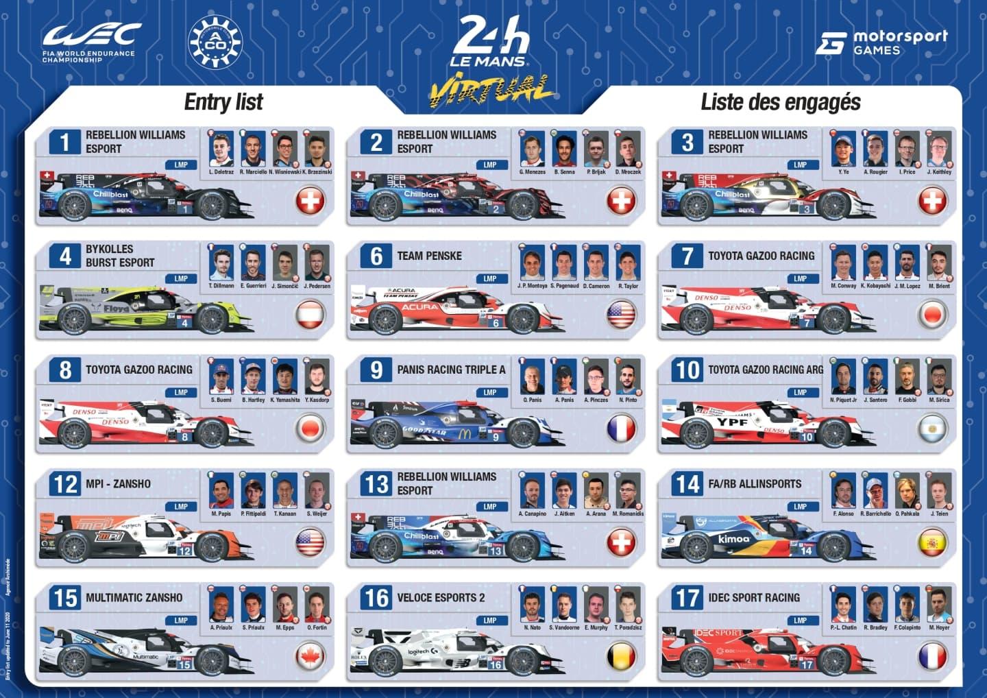 Lista de inscritos de las 24 Horas de Le Mans Virtuales*: