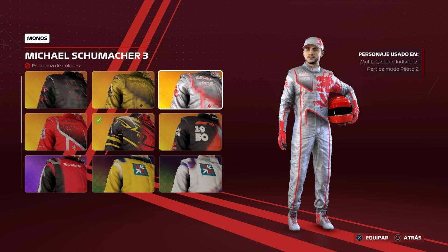 Recordemos que, además de los modos campeonatos, multijugador, Grand Prix o Contrarreloj, también tenemos la opción del modo “Mi Equipo”, con el que podremos gestionar por completo todo lo relacionado con nuestra escudería (en el modo campeonato solo podremos elegir a que piloto sustituimos en el equipo por el que fichamos al llegar a la Fórmula 1), desde los patrocinadores, hasta el compañero que nos acompañará en la aventura de ser el undécimo equipo de la parrilla. Como guiño, la edición Michael Schumacher contará con algunas libreas exclusivas, monos y cascos que rescatan las distintas versiones empleadas por el alemán, el blanco y dorado de su etapa Mercedes y el rojo de Ferrari, así como los dragones chinos que empleaba.