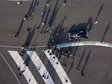 Y es que Dumas conoce tan bien este circuito que será capaz de hacerse una idea de la diferencia, positiva o negativa, en cuanto a segundos que puede encontrarse el próximo mes de junio en la prueba norteamericana. Con cara despejada, Dumas se ponía frente al coche ya sobre el asfalto de la larga curva en subida que hace este trazado aún más especial. No era la primera vez que lo veía, pero tampoco podía apartar su mirada de él. Ya con la prensa reunida, el sonido de las ráfagas de las cámaras de fotos era casi continuo. Más cuando Romain se acercaba a mirar detalladamente el vehículo eléctrico de Volkswagen.