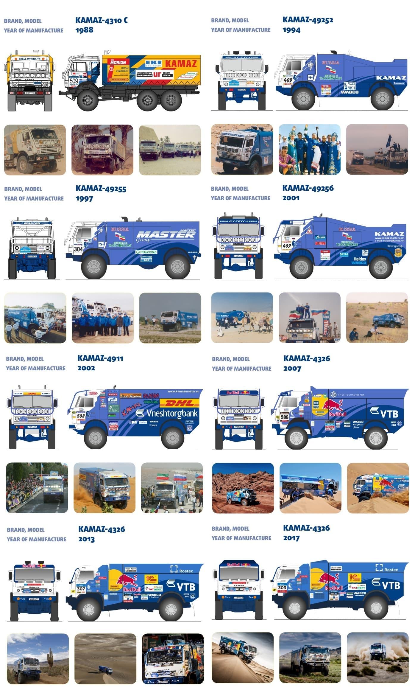 Las homologaciones se endurecieron mucho, obligando a que un camión prototipo de competición solo pudiera recibirla en el caso de haber completado hasta 50 unidades (quince anteriormente), algo que obligó a KAMAZ a utilizar como base el camión del ejército ruso para llegar a estos nuevos requisitos. Sería uno de los primeros camiones de la Blue Armada en vestir los colores de Red Bull.