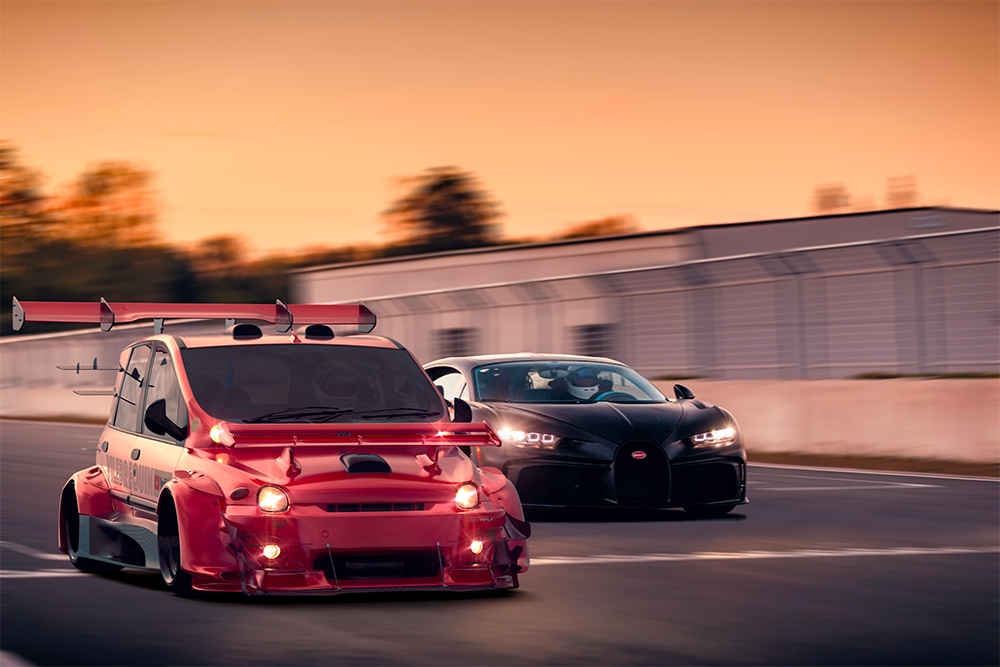 Lo que comenzó siendo un proyecto disparatado, casi a modo de broma, se ha ido completamente de las manos y el bautizado como 1000TIPLA ha echado a andar con cualquier previsión de recaudación completamente pulverizada. Hablaban de 50.000 euros para poder llevarlo a cabo, pero tras cuatro días con su campaña de crowdfunding activa, llevan recaudados casi medio millón de euros. Por ahora, el coche no deja de ser una ilustración 3D creada por Robin Dourfer, pero el objetivo es el de terminar por completar el experimento y crear un FIAT Multipla capaz de ganar al Bugatti Veyron (sí, en el render es un Chiron, pero ellos hablan de Veyron en su presentación).