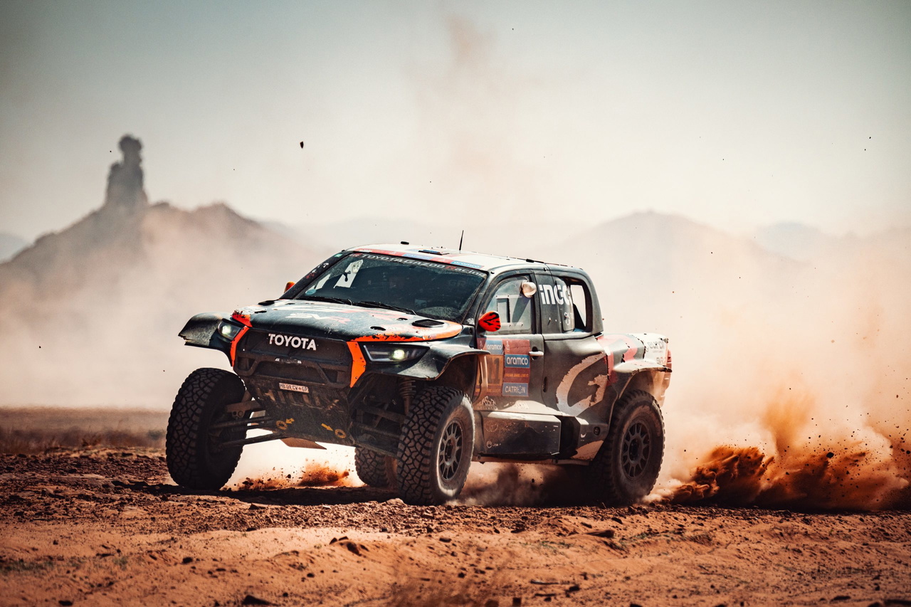 El qatarí fue sin lugar a dudas el más rápido. Contando con Cristina Gutiérrez y Pablo Moreno Huete como guardaespaldas, Nasser se propuso recuperar posiciones y llegar a la jornada de descanso con algo menos de losa en cuanto a tiempo respecto a los pilotos que le precedían, por lo que ya desde el primer kilómetro se le vio empujar al máximo al volante del Dacia Sandrider. La llegada a los últimos Waypoints anunciaba que a Yazeed Al-Rajhi le estaban cayendo más de diez minutos y que al líder de la general, Henk Lategan, también le estaban castigando con ocho minutos y medio.