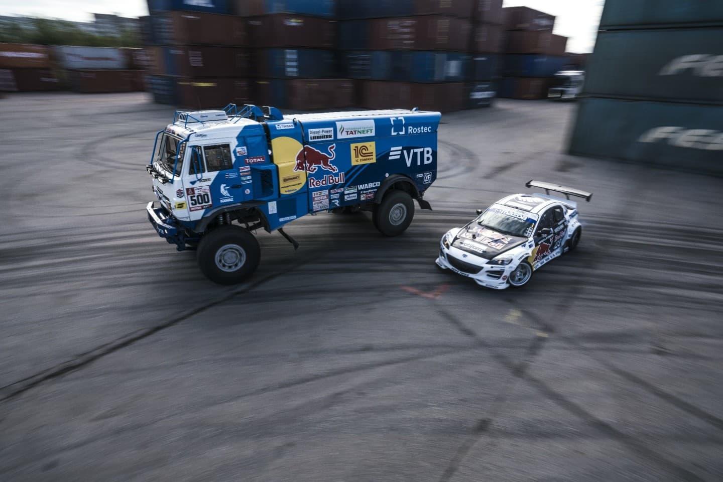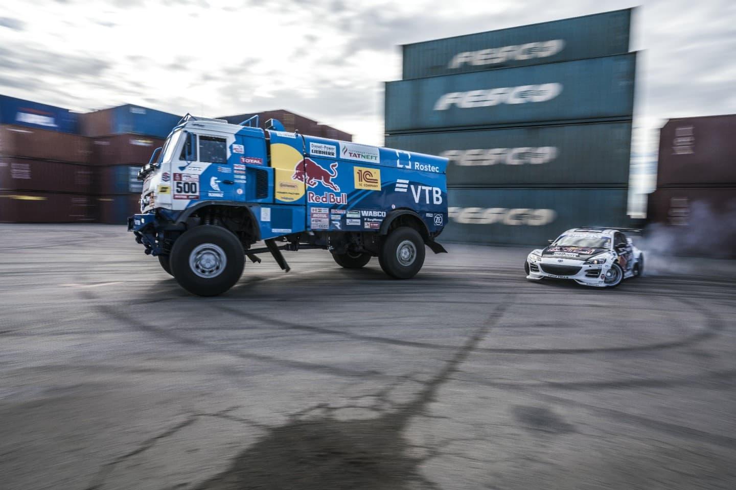 Hasta ahora hemos visto a los camiones de competición de KAMAZ Master enfrentarse a múltiples desafíos, especialmente en el Rally Dakar, pero también fuera, en este caso como integrante de la gran familia de Red Bull. Si hace dos años lo vimos rodar en la icónica especial del Rally de Finlandia, Ouninpohja, junto al Volkswagen Polo R WRC, ahora es el turbo de verlo hacer drift cono todo un especialista en la disciplina, Mad Mike Whiddett y su espectacular Mazda RX8 con casi 1.000 CV bautizado con el sobrenombre de Bad Bull.
