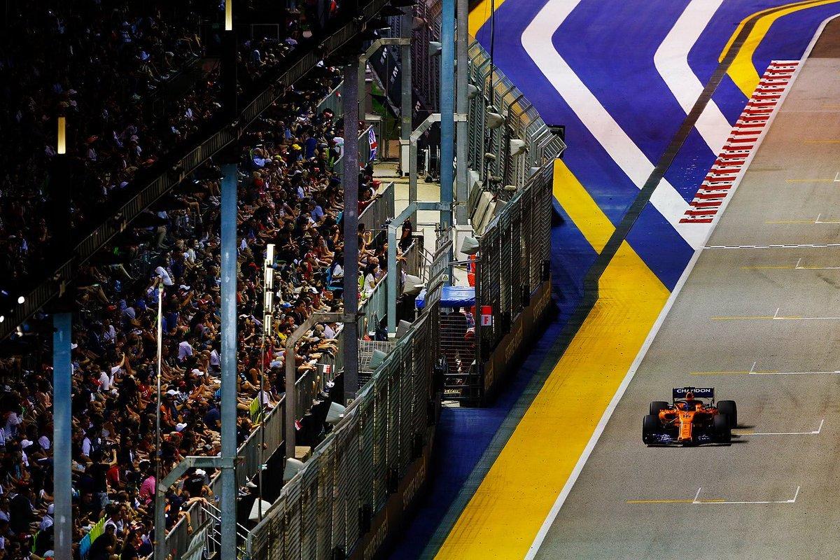 El habitualmente bonito Gran Premio de Singapur no tuvo tanta dosis de emoción y adrenalina en su edición de 2018, ya que la carrera estuvo decidida prácticamente desde el primer minuto en la zona alta. Un accidente inicial ayudó a que algunos pilotos tomasen estrategias diferentes con la intervención del Safety Car y uno de los equipos que acertó fue McLaren. Fernando Alonso partió bien y tomó la anomalía estratégica al disponer de los ultrablandos en la salida en lugar de los desgastables hiperblandos, alargando su detención y rodando bien en solitario para cruzar la meta séptimo en el fin de semana más productivo de McLaren en puntos desde abril.