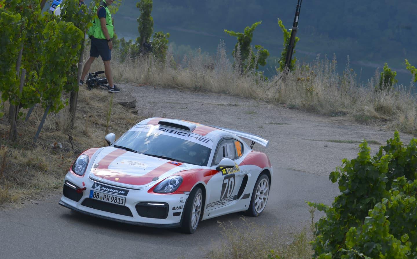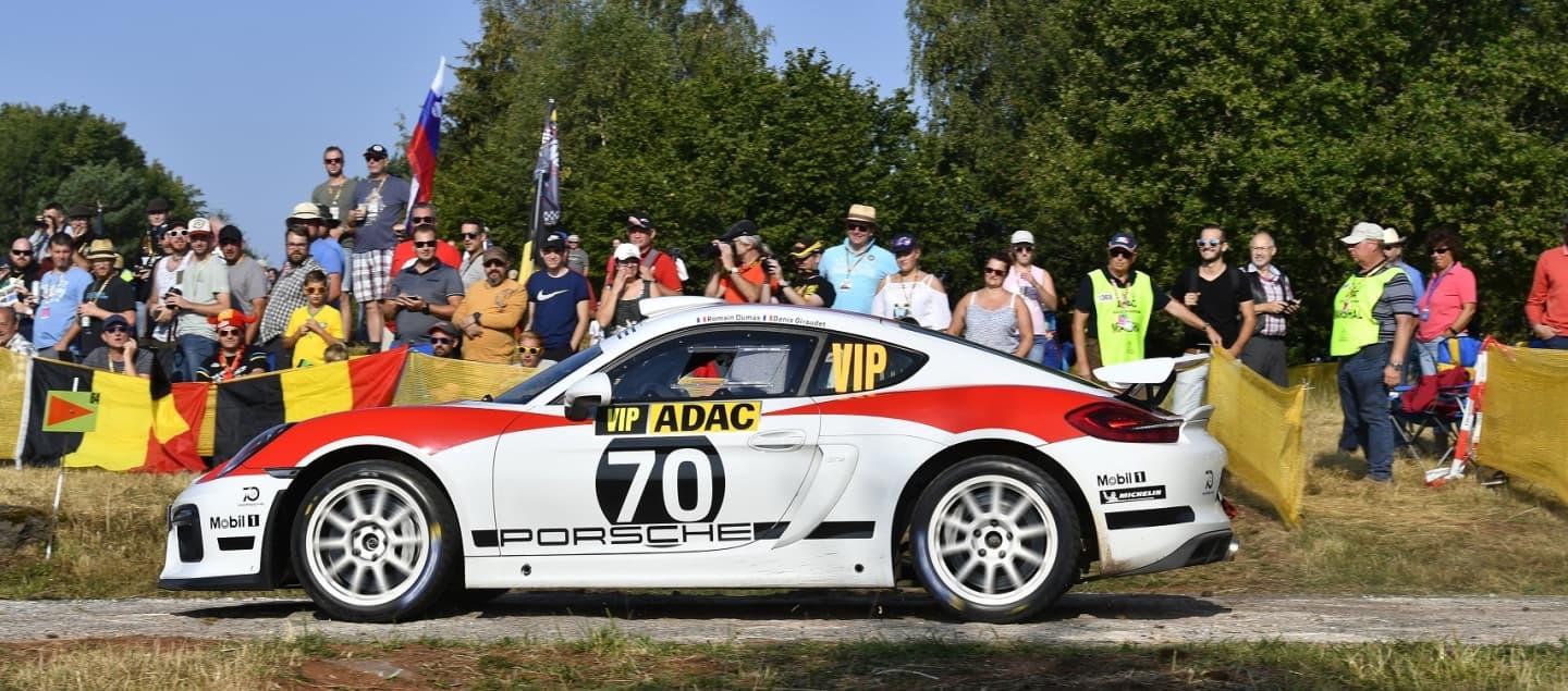 Luciendo una librea clásica con los colores rojiblancos y un dorsal con el 70 estampado en sus laterales, con una tipografía y unas formas que transportaban a todos aquellos que los vieran a otra época. Porsche decidía sacar a rodar este fin de semana a su Porsche Cayman GT4 Clubsport con la intención de ver cómo se comporta en los revirados tramos del Rallye de Alemania con dos hombres de la experiencia de Romain Dumas y Denis Giraudet, pero sobre todo con la posibilidad en mente de crear un vehículo carreras-cliente para la categoría R-GT en un futuro no muy lejano y aprovechando seguramente el lanzamiento de un nuevo vehículo, quién sabe si la revisión del GT4 Clubsport ahora que se ha estrenado hace no muchos meses el 718 Cayman.