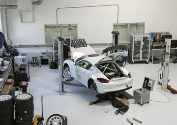 Richard Lietz y Timo Bernhard, los otros pilotos oficiales de Porsche también han estado involucrados en el desarrollo de este Cayman GT4 Clubsport de 2016 modificado, el cual mantiene el motor bóxer de seis cilindros y 3.8 litros, que desarrolla una potencia de 385 caballos y transmisión Porsche de doble embrague (PDK) con levas.