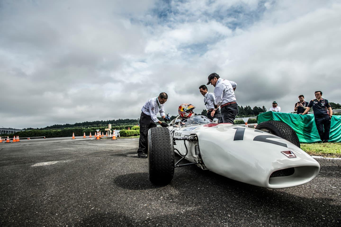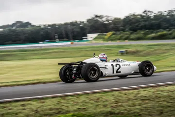 No todos los días se puede experimentar las sensaciones de los Grand Prix de la década de los sesenta, aunque no sea exprimiendo al máximo los poco más de 200 CV de un monoplaza que se convirtió en el primer coche ganador de un Gran Premio para Honda y Goodyear con Paul Richard Ginther al volante y curiosamente en México de 1965, carrera en la que la normativa 1.499 cc se despedía. Atentos al sonido.