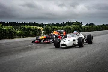 Fue en este caso en la pista de pruebas de Honda en Tochigi, un lugar para rodar con el RB7 de 2011 y el RA272 en paralelo y así terminar de firmar el compromiso profesional al que se entregaron ambas partes, al alimón entre la necesidad y la conveniencia. A muchos les resultará más que conocido el coche, reproducido fielmente como un guiño de Nintendo a sus compatriotas como uno de los vehículos del Mario Kart, mientras que la decoración blanca ha sido heredada por algunos modelos de la firma a lo largo de los años.