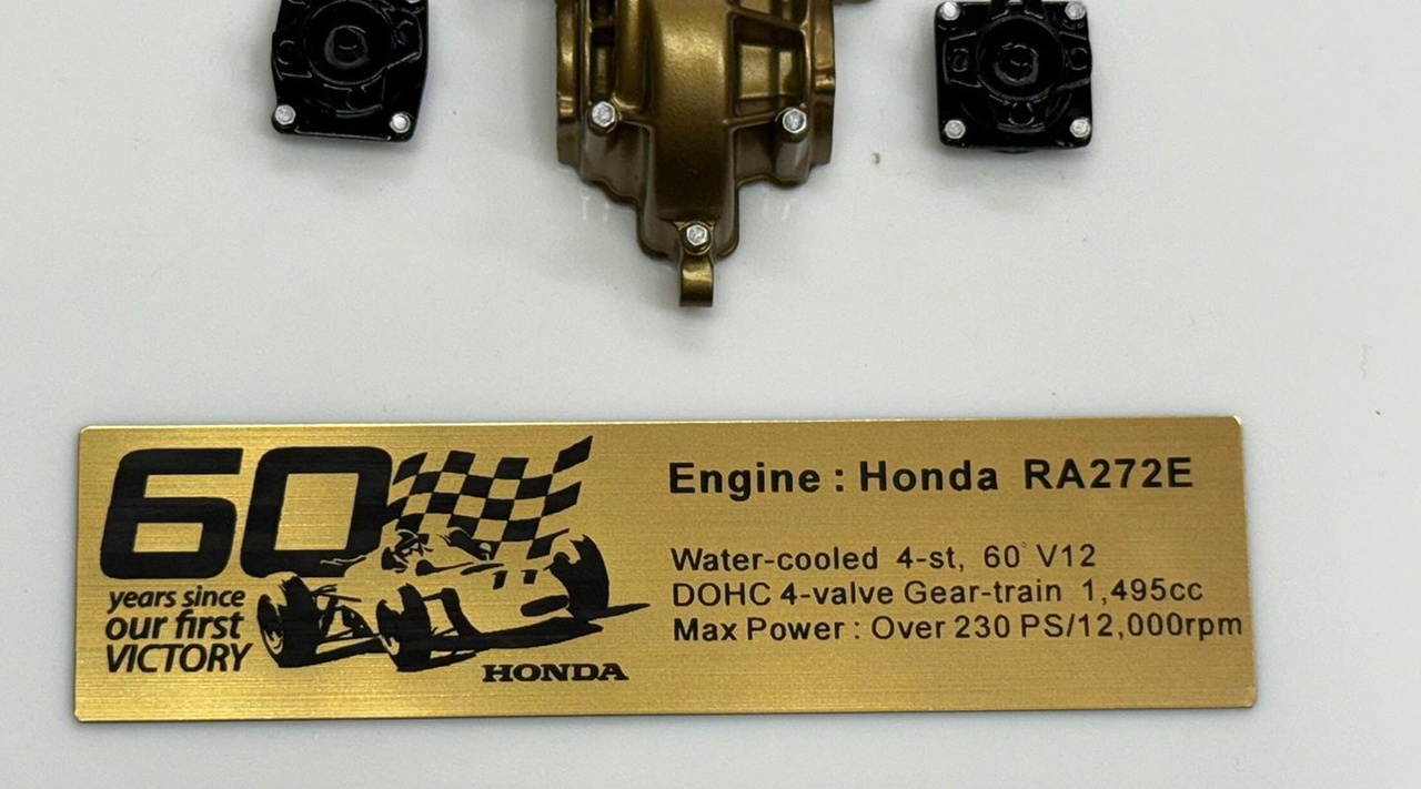 Para el próximo Gran Premio de México está prevista una exhibición de Yuki Tsunoda a bordo del Honda RA272 que ganó esa misma carrera en 1965 y para celebrar la ocasión, los 60 años de aquella primera victoria del fabricante japonés en la Fórmula 1, HRC y Kusaka Engineering ofrecen un modelo a escala del motor RA272E con el que se pretende mantener la historia de Honda en las carreras a través de la comercialización de maquetas de motores. Limitada su producción a 60 unidades y fabricadas bajo pedido para entregarse en el mes de diciembre, cada comprador tendrá en sus manos una réplica exacta del motor ya que el original, que está en la Sala de Colección de Honda ubicada en Motegi, fue desmontado meticulosamente para que cada pieza fuera escaneada en 3D para su modelado a escala.