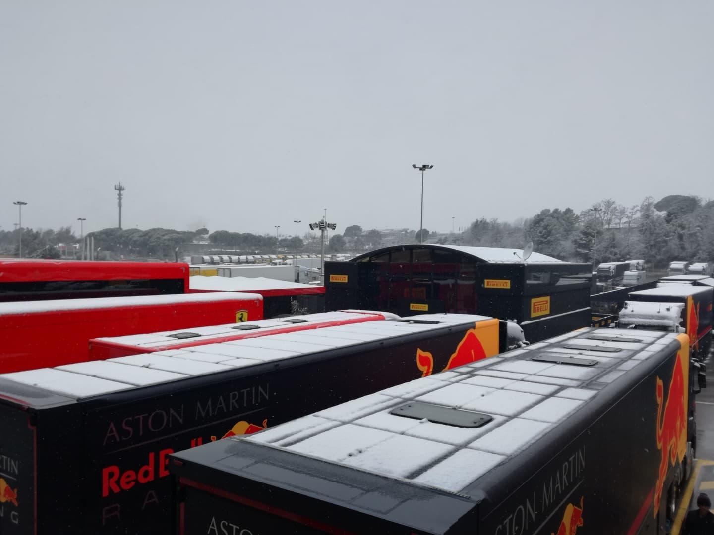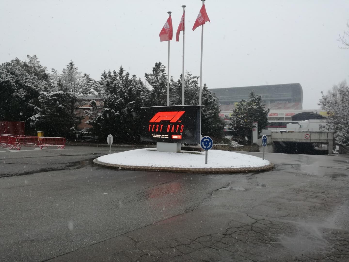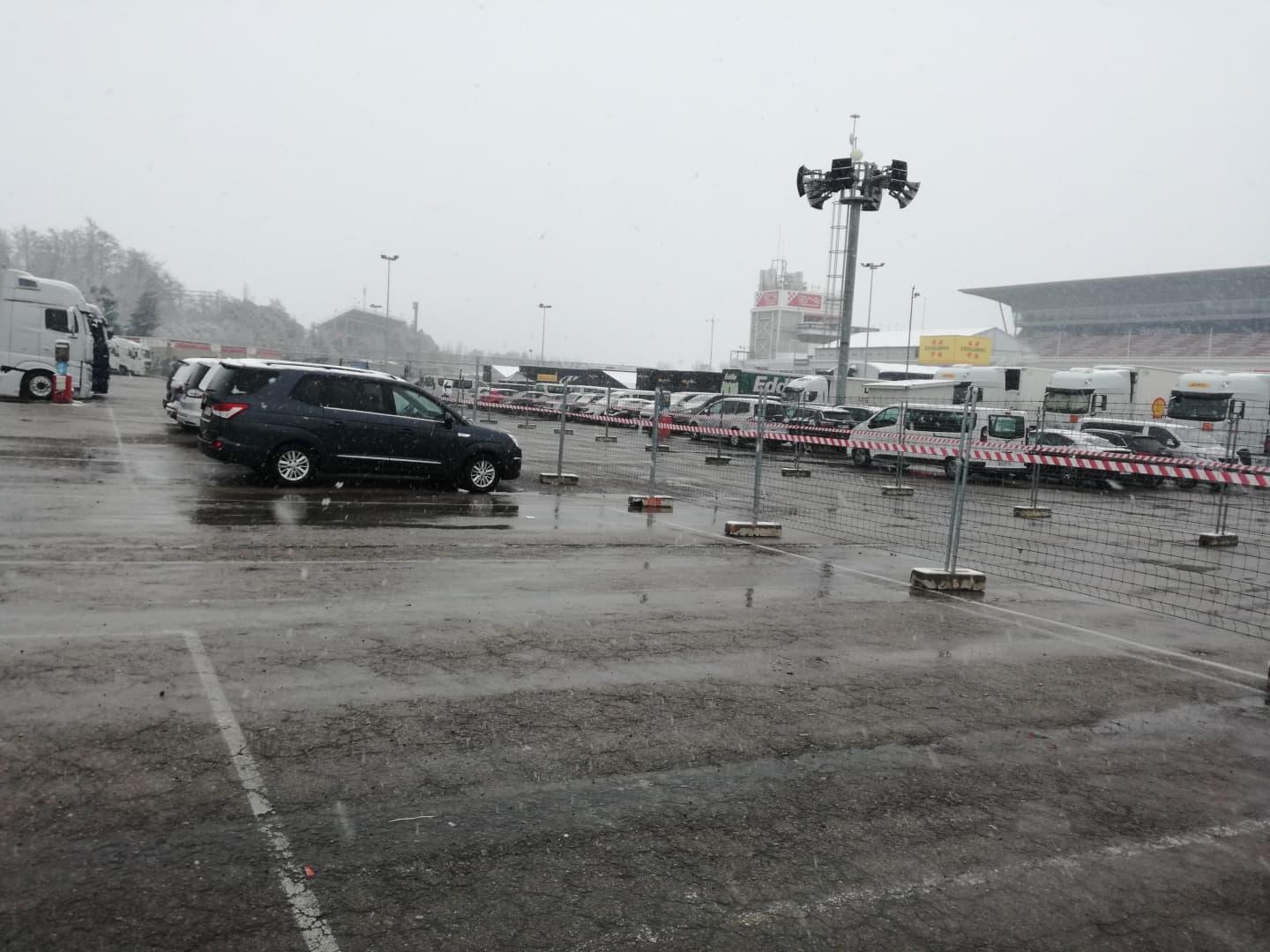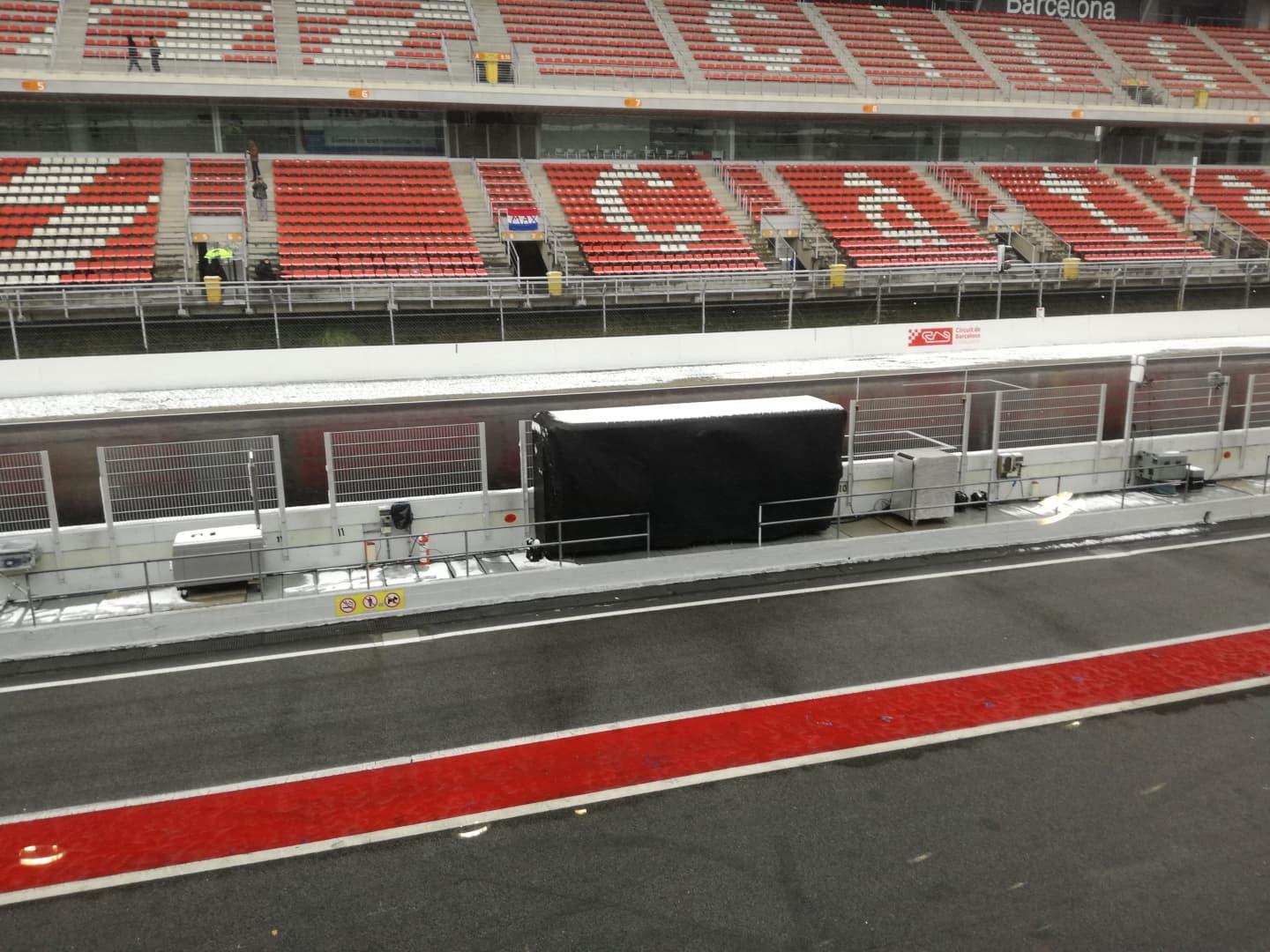 El Circuit de Barcelona-Catalunya está tranquilo. La amenaza meteorológica se ha cumplido y la tercera sesión de entrenamientos libres se encuentra detenida por la esperada aparición de la nieve. El reloj está en marcha pero oficialmente se ha retrasado el comienzo del test del miércoles porque el helicóptero no puede despegar en caso de accidente.