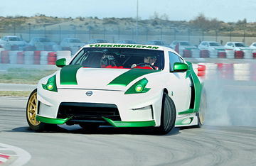 Precisamente en una de las comunicaciones oficiales del gobierno de Turkmenistán podemos ver a Berdymujamédov no solo montando en bicicleta con un nada llamativo chándal con los colores del país, sino también hacer derrapar un Nissan 370Z que solicitó preparar específicamente para que él mismo probara la disciplina del Drifting. Parece que le gustó tanto que pidió que se estrecharan relaciones con el fabricante nipón, quizás para realizar nuevos proyectos en el futuro con la firma de Yokohama. Si alguno se lo pregunta; no, nosotros no hemos retocado la imagen que encabeza el artículo.