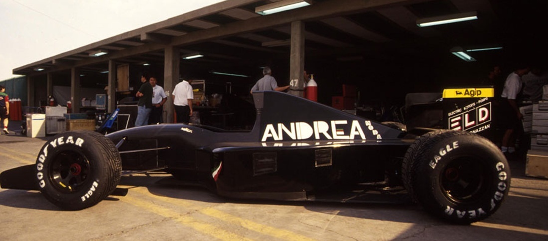 Se trata uno de los equipos históricos de la Fórmula 1… pero no por sus resultados. Todo parte de lo sucedido en la temporada 1992, con la idea loca de un empresario con look de playboy italiano, Andrea Sassetti, al frente de una marca de fabricación de zapatos, que tuvo a bien un día, prácticamente dinamitar su fortuna a través de la creación de una escudería. La base fue otro de esos proyectos peculiares de la historia de los Grandes Premios, Coloni, y a partir de ahí, la historia sólo podría dejarnos un momento glorioso tras otro. Nacía Andrea Moda.