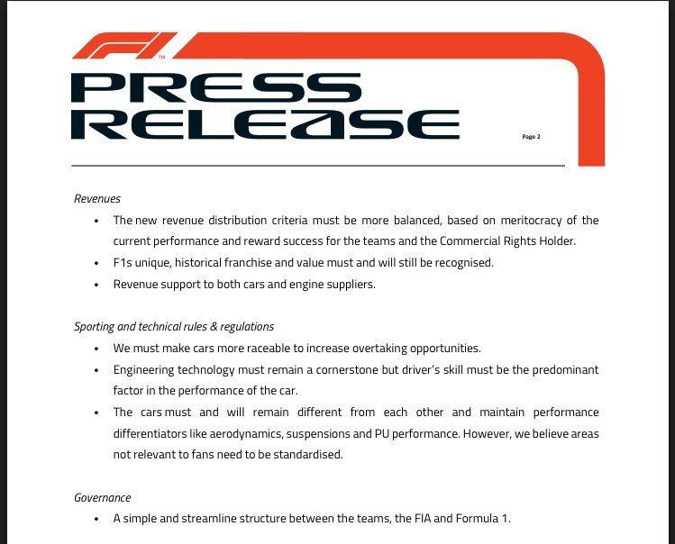 Dice mucho el hecho de que los motores sean el primer apartado tratado. La nota de prensa asegura que deben ser más baratos, más simples, más ruidosos y más potentes, permitiendo al mismo tiempo que desaparezcan las sanciones en parrilla. Y claro, la guinda la pone la voluntad de mantener la hibridación y que cada fabricante pueda construir motores únicos…