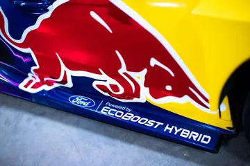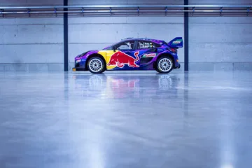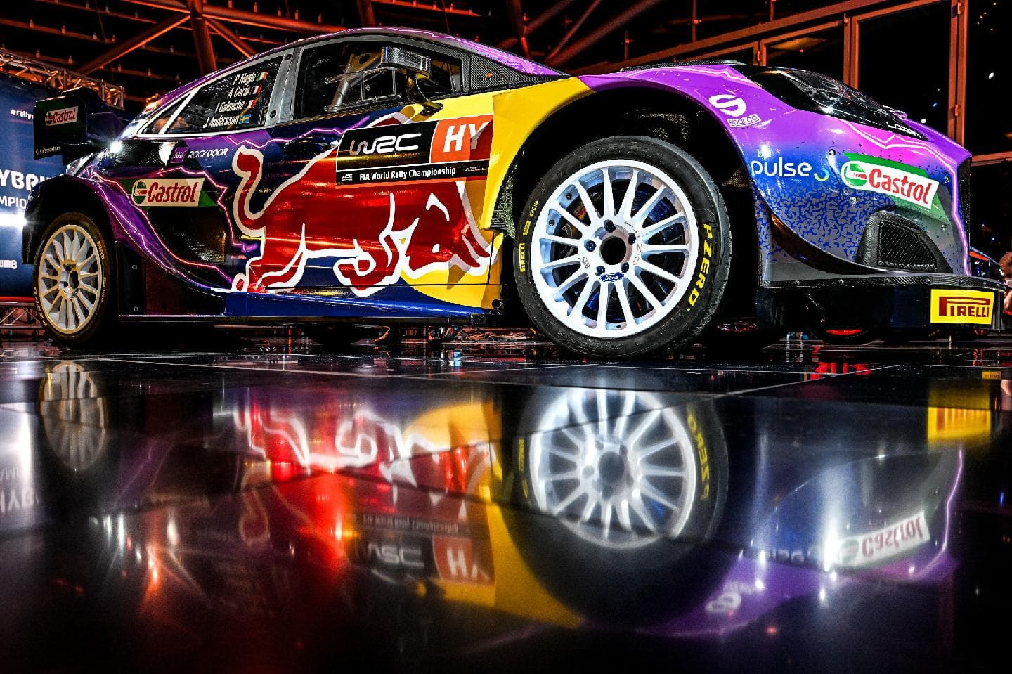 Se dejaba a un lado el color azul corporativo de los de Detroit para optar por un color eléctrico púrpura que se mezcla con el verde de Castrol, los toros rojos de Red Bull (seguramente sólo visible en los coches de Breen, Loeb y Fourmaux) y esos rayos que anuncian precisamente esa era electrificada que está a punto de empezar. El púrpura es un color poco visto entre los equipos oficiales del Mundial, aunque ya hemos visto recientemente que Travis Pastrana y el equipo Subaru han optado por algo parecido para el campeonato americano. En el Mundial, apenas Peter Van Merksteijn nos dejó ver su Ford Focus RS WRC y Citroën DS3 WRC privados empleando un tono similar, todo un shock desde luego la opción de M-Sport.