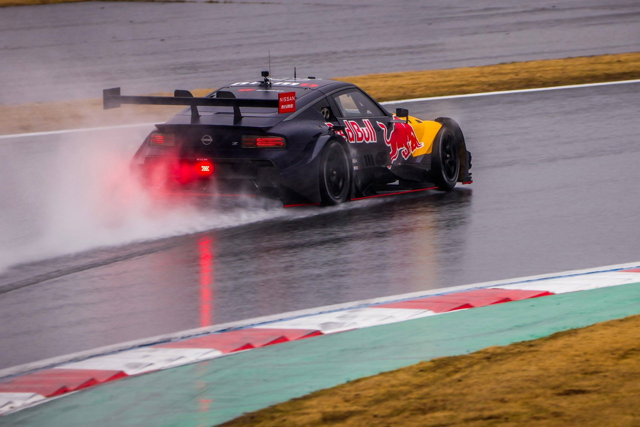 Pero hoy fue el día de NISMO, equipo que hasta ahora jamás había tenido relación con Red Bull, así que Nissan tiene imágenes de Verstappen al volante de un modelo Z GT500 exprimiendo en suelo mojado el motor V6 turbo de tres litros procedente de la base de operaciones ubicada en Yokohama. Red Bull es una marca muy popular en Japón, con una larga tradición de patrocinio, la cual se intensificó cuando se asoció con Honda en la Fórmula 1 y llevó a Yuki Tsunoda a la categoría, además de a Ayumu Iwasa a la Fórmula 2, y respaldó a Mugen en suelo nipón. Tras consumarse la separación a finales del año pasado, todavía la marca de bebidas permanece vigente en Japón, demostrando que su impacto en el mercado local no dependía de Honda.