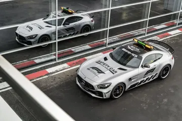 Con el inicio tanto del Mundial de Motociclismo como de la Fórmula 1, Mercedes-AMG y BMW M han decidido renovar su parque móvil dejándonos dos verdaderas joyas sobre cuatro ruedas que se encargarán de proteger la integridad de los deportistas durante 2018. En el caso de la firma de la estrella, estamos ante el Safety Car de la Fórmula 1 más potente de la historia de la competición. Con un motor V8 biturbo de 4.0 litros que eroga 585 CV, es capaz de alcanzar los 318 km/h y hacer el 0 a 100 km/h en apenas 3,6 segundos. No podrán batir a un monoplaza del Gran Circo, pero su puesta a punto forjada en las curvas del Infierno Verde, así como algunas características heredadas de la versión GT3 hacen que este Mercedes-AMG GT R sea un auténtico misil con aerodinámica activa en manos de Bernd Mayländer.
