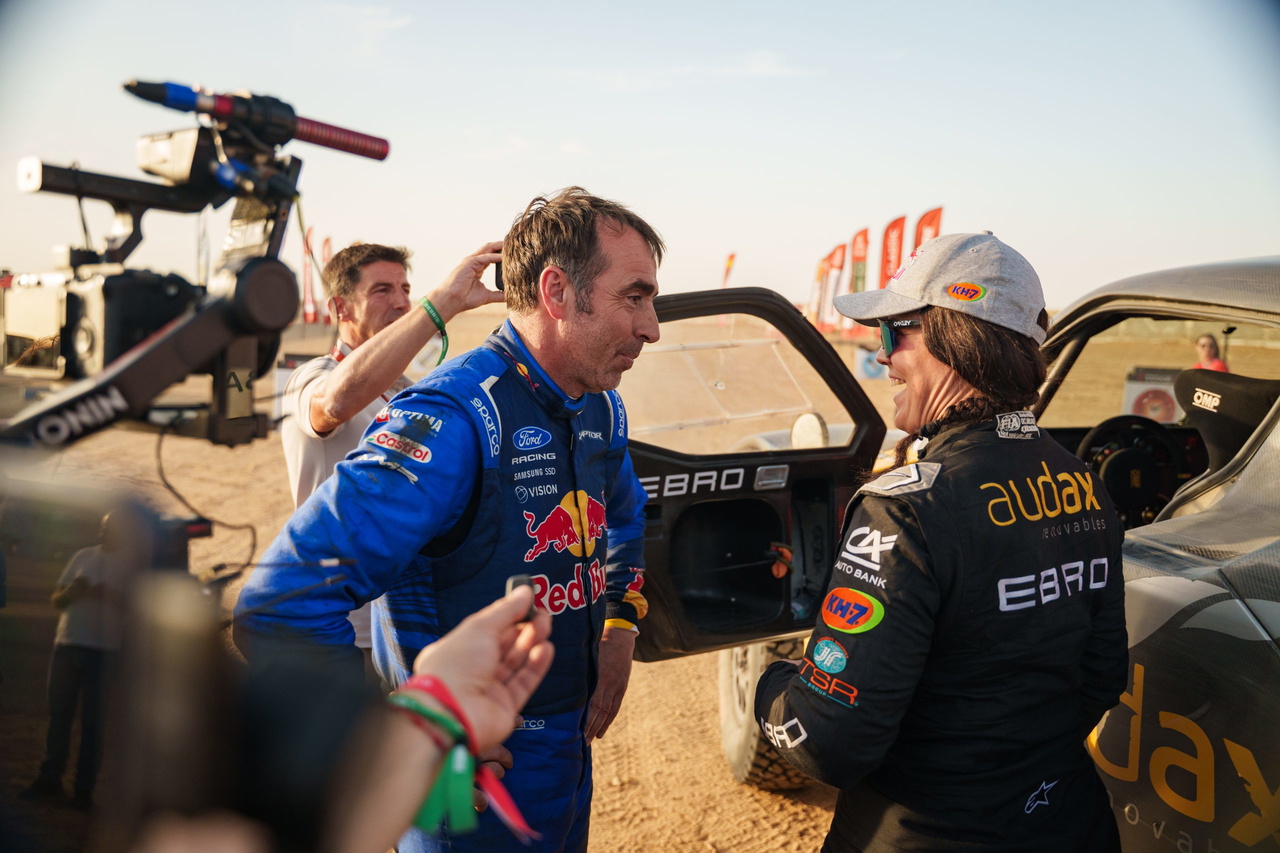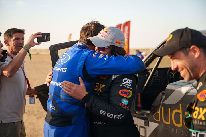 La imagen de Nani y Alex bajándose de la Ford nada más llegar al control para fundirse en un abrazo con Laia y Maurizio ha entrado inmediatamente en una de las grandes imágenes de este Rally Dakar 2026, con una fiesta que se puede completar para ambos si ambos cumplen con sus objetivos de terminar el Dakar en el podio, mientras que la piloto de EBRO alcanza un magnífico TOP20 en su gran estreno entre los coches de la categoría T1+. Todavía queda trabajo por hacer para ambos, especialmente para un Nani que ha recibido un minuto de penalización y que espera poder defender su renta en la jornada de mañana a lo largo de los 105 km cronometrados de los que se compone la sección competitiva.