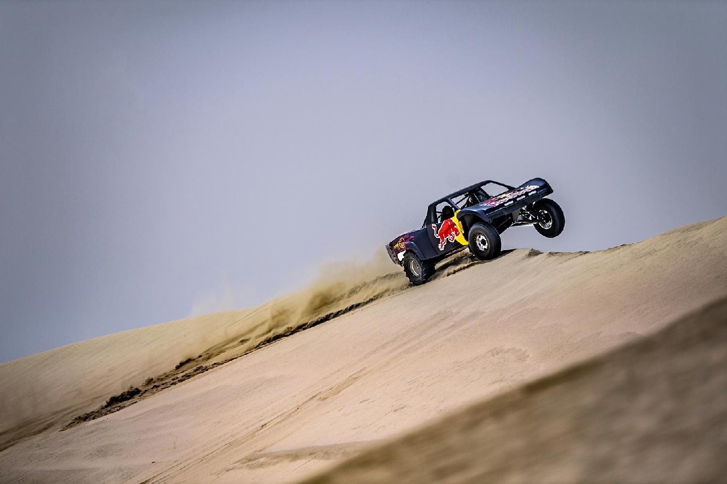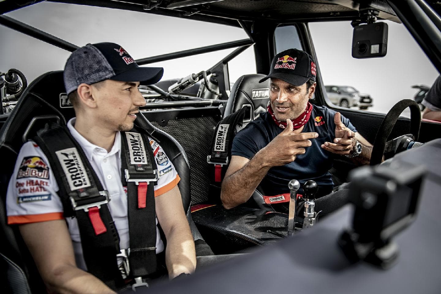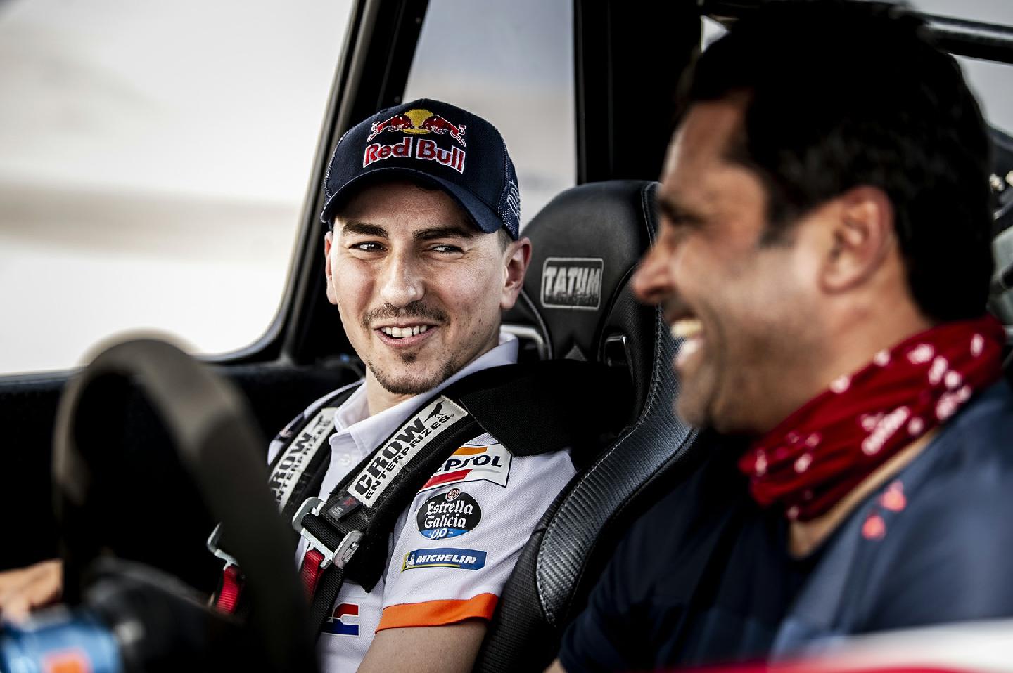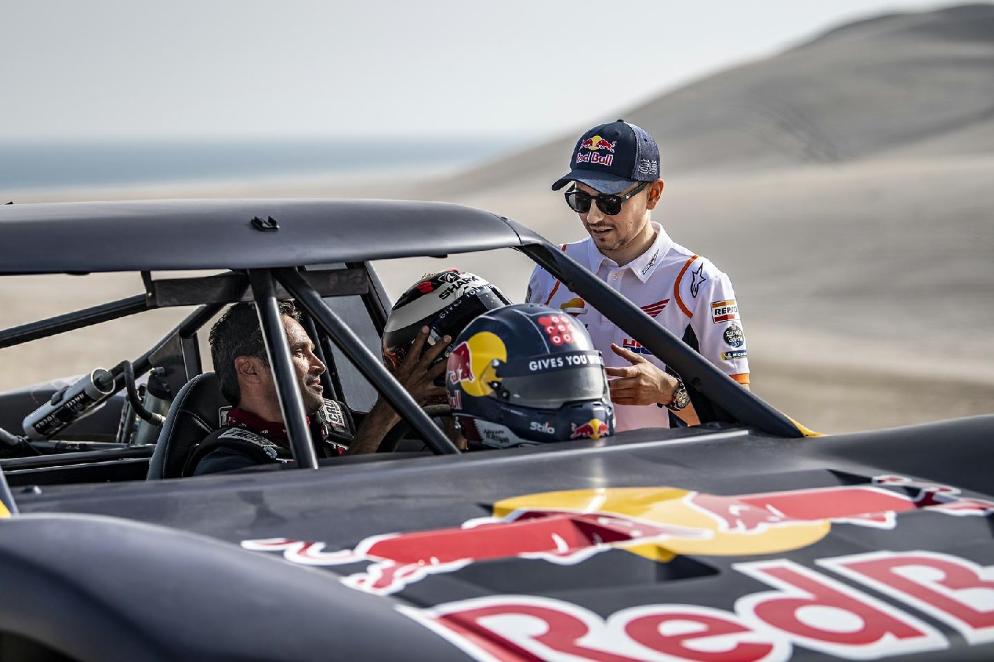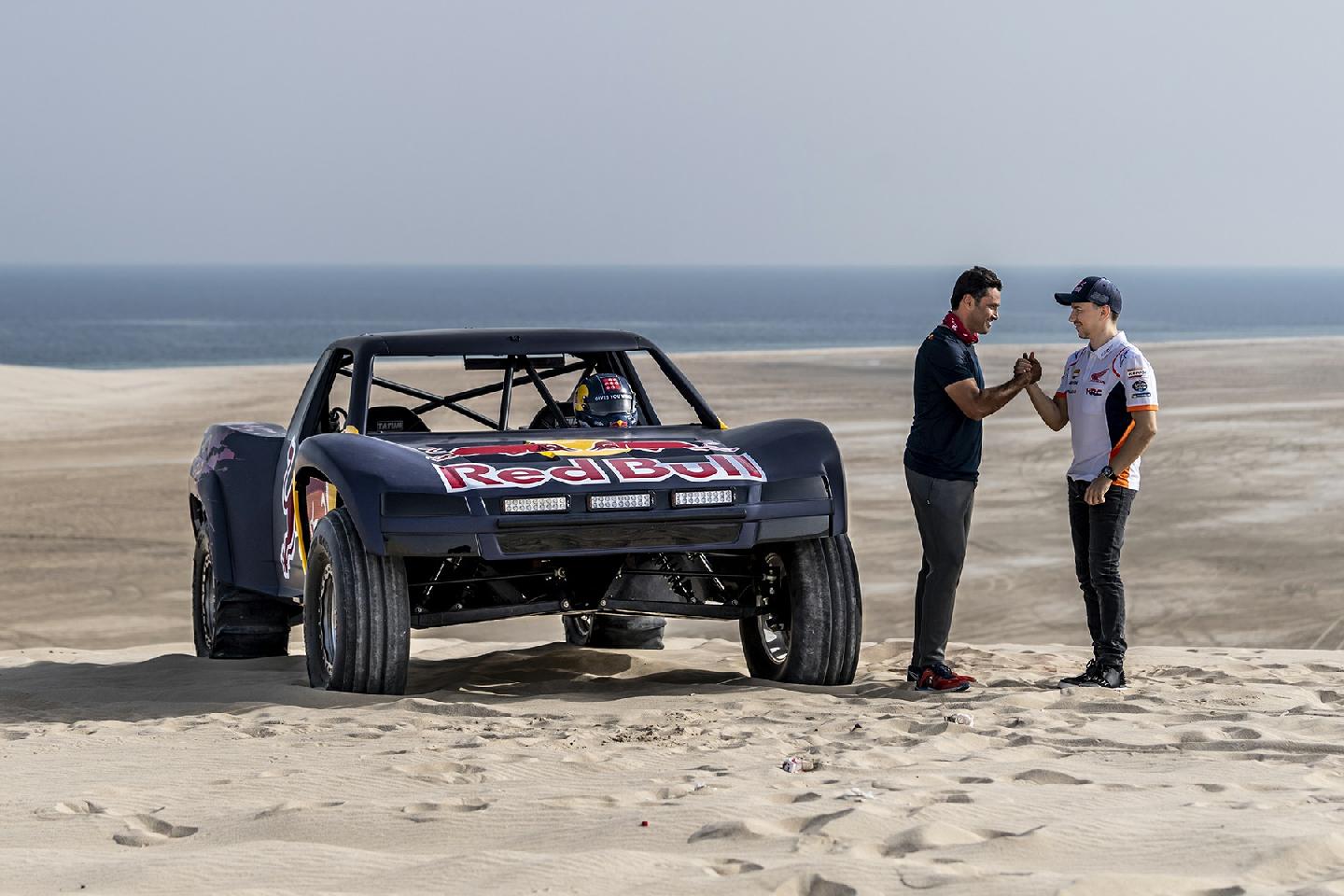 Habíamos oído hablar del buggy que Nasser Al-Attiyah tenía en Qatar para disfrutar de las dunas, el mismo que había probado Sébastien Loeb antes de hacer su primer rally-raid, sin embargo, nunca habíamos llegado a ver imágenes del mismo… hasta hoy. Ha tenido que ser uno de los recién llegados a la familia Red Bull, Jorge Lorenzo, el que haya tenido que sufrir en sus carnes de lo que es capaz el Trophy Truck del qatarí aprovechando que el Mundial de Motociclismo arranca este fin de semana en ese país. Seamos sinceros, parece que el nuevo piloto de HRC ha pasado mucho miedo.