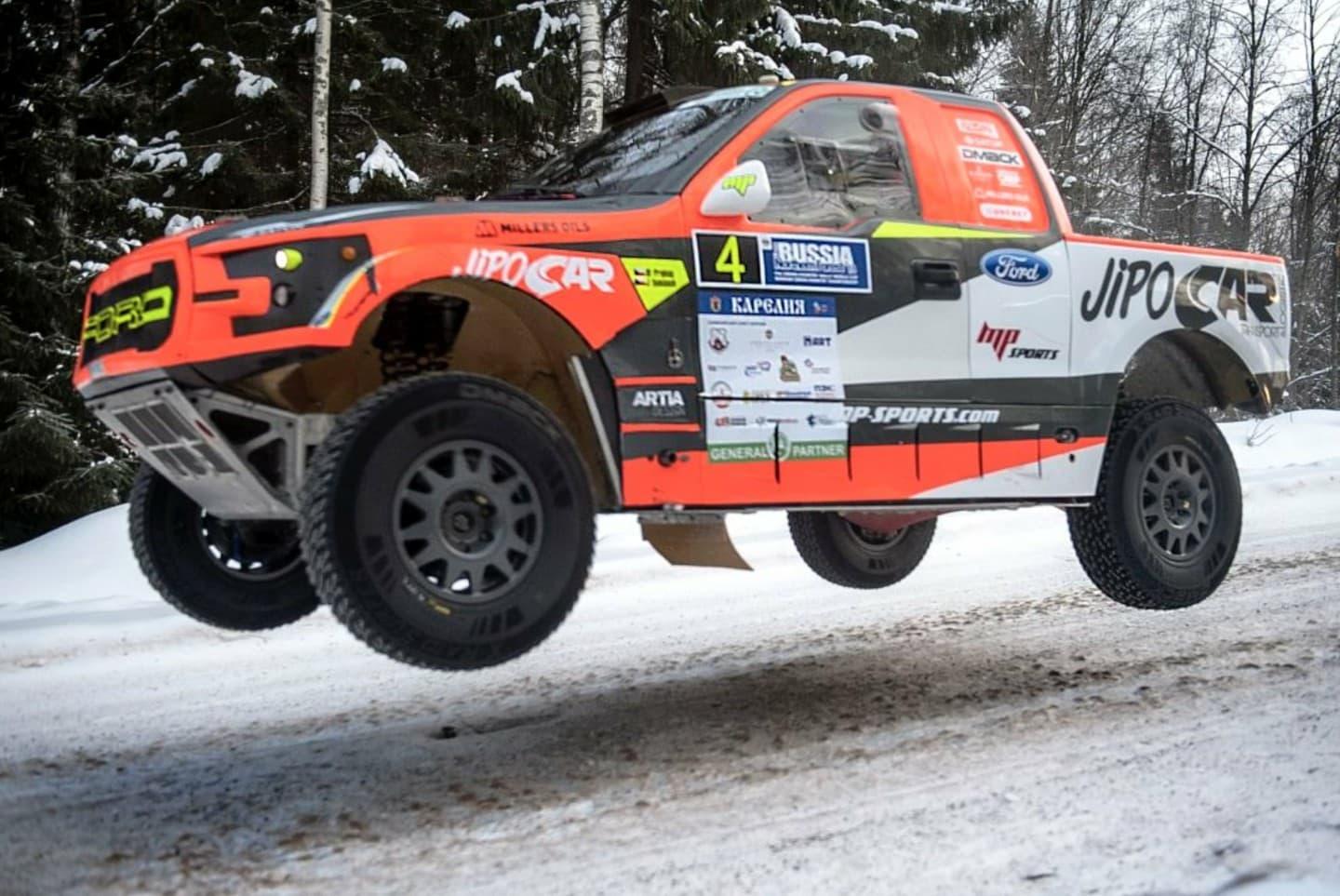 Con el apoyo de DMACK, Prokop estrenaba a su vez el nuevo neumático para bajas que ha desarrollado el fabricante británico y que han bautizado como X-Raid Surfer Tyre. En este caso equipado con 600 clavos para poder ayudar a traccionar en las condiciones deslizantes que presentaba el recorrido celebrado al norte de Rusia (en el caso del WRC las ruedas llevan 384 clavos cada una), las imágenes que dejaban los competidores en este infierno blanco eran completamente espectaculares. Aquí, al igual que en el Rally de Suecia, se presentaba la principal dificultad de conseguir distinguir la carretera entre ese despliegue monocromático, teniendo en cuenta que aquí las notas son menos precisas que en el Mundial de Rallyes.