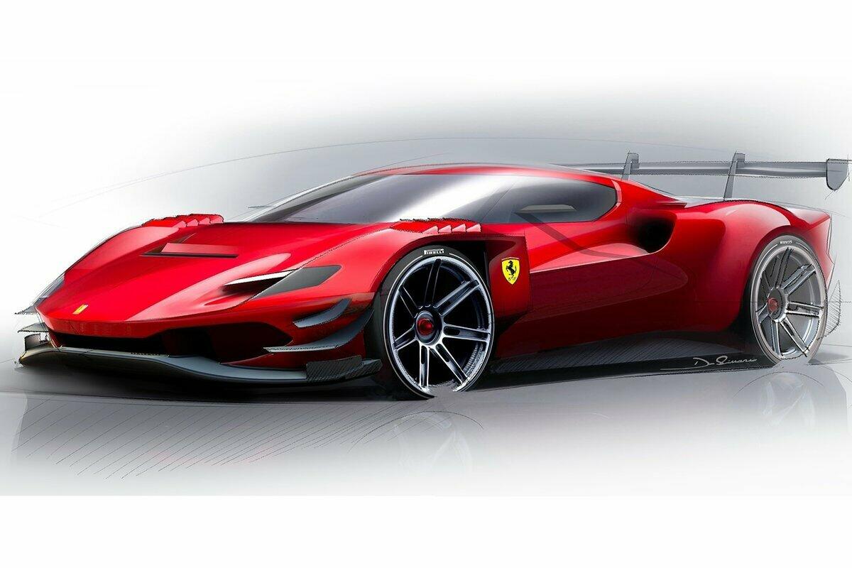Por su parte, si nos fijamos en los bocetos, además de esas preciosas formas redondeadas del frontal que nos llevan en parte a recuperar ea era delo F430 o del 360 Modena, también podemos apreciar el gran trabajo aerodinámico realizado, la entrada de unos grandes canards para acompañar al splitter delantero y generar carga para el tren delantero, así como los soportes del alerón trasero con anclaje superior, una solución que parece ser de un tiempo a esta parte la predilecta por los fabricantes al conseguirse mejores resultados y que por ejemplo ya hemos visto en el Porsche 911 RSR GTE o en los GT3 de Audi, McLaren, Lamborghini, BMW y la propia Porsche.