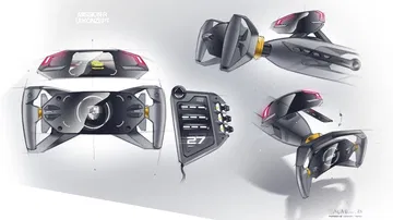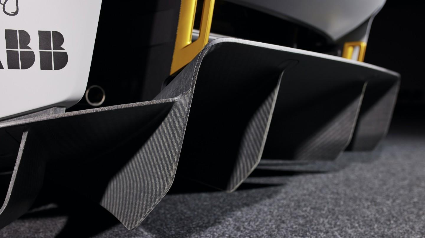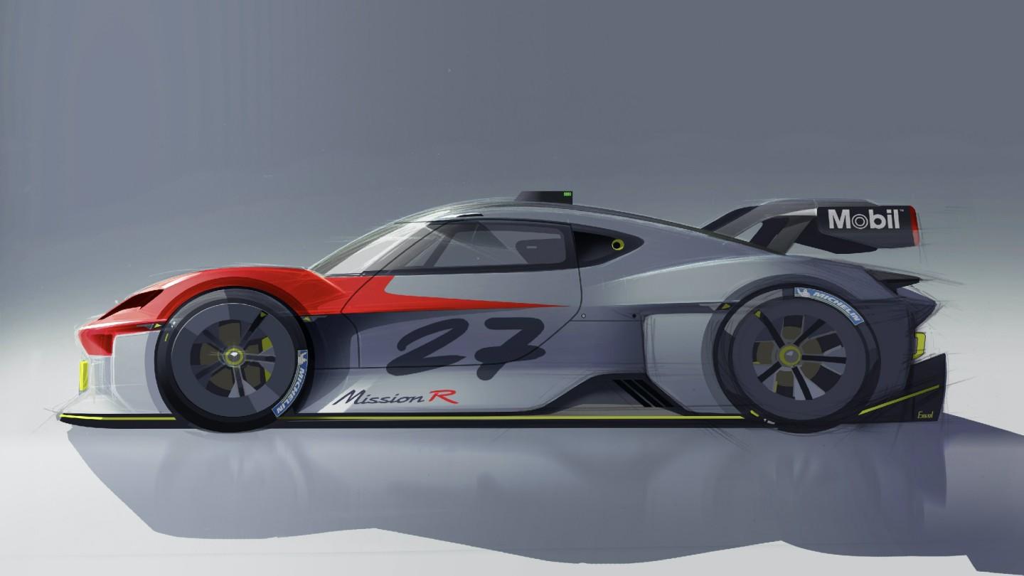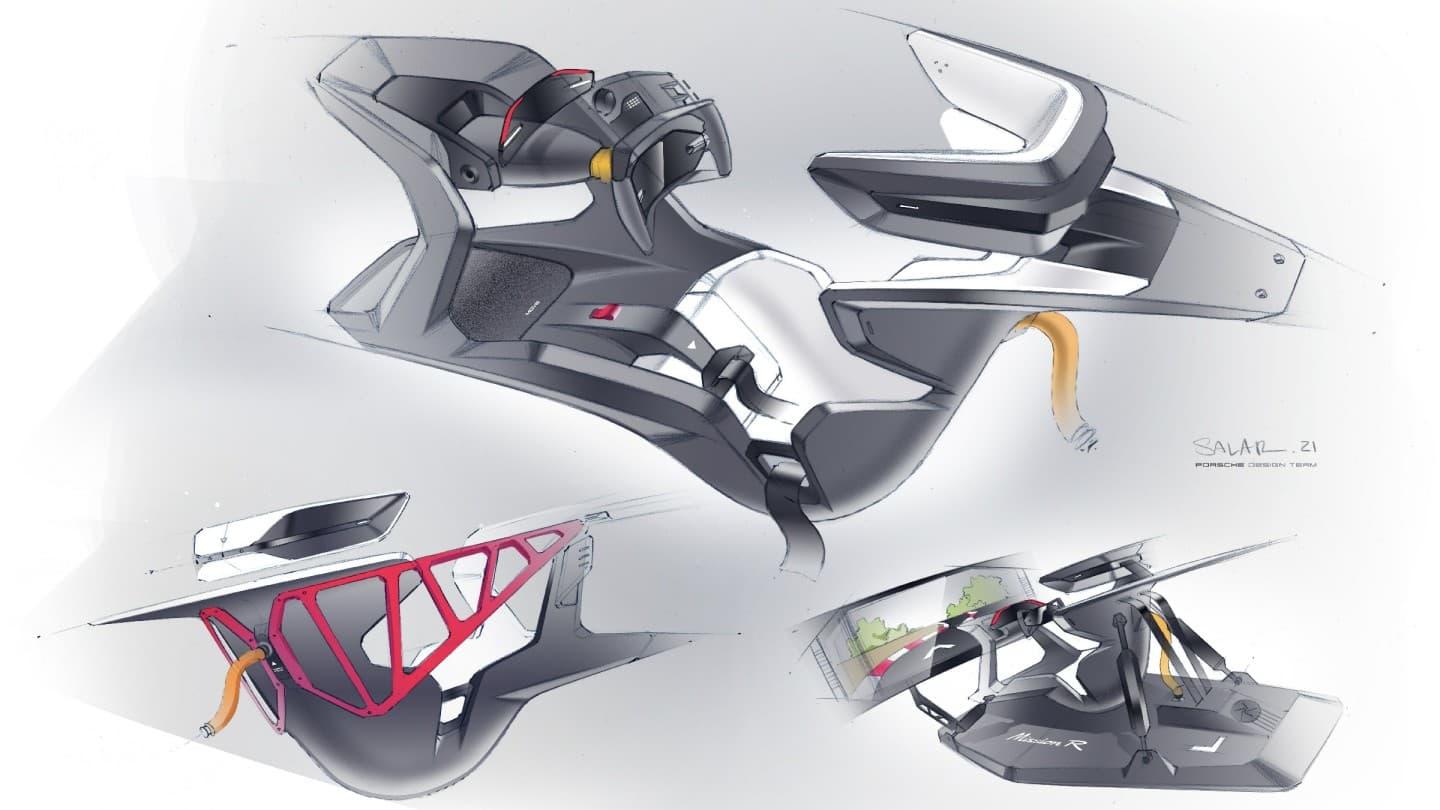 En cuanto a la aerodinámica, Porsche ha incluido elementos activos como ya sucede en vehículos de calle como el Taycan, algo que no sólo implica en el ángulo de inclinación del spoiler trasero en el caso del Porsche Mission R, sino que también controlará las rejillas de las tomas de aire laterales en el frontal, incidiendo de esta forma en la cantidad de drag generado por dichos elementos que variarán su grado de apertura en función de las necesidades que tengan de refrigeración los motores eléctricos. Como ya se había optado en el Porsche 718 Cayman GT4 Clubsport, se ha optado por emplear fibras naturales en algunos paneles de la carrocería, en este caso como parte del ‘tejido’ que conforma el conocido como NFRP (Natural Fiber Reinforced Plastic Composites).