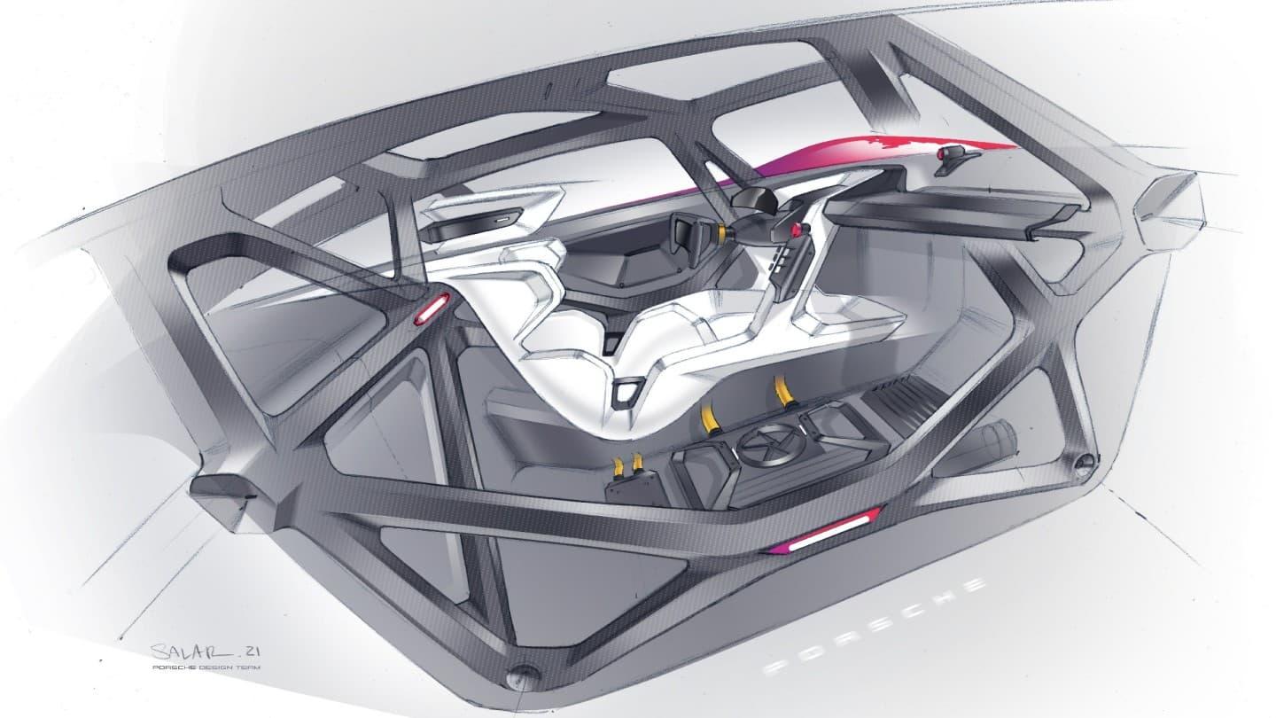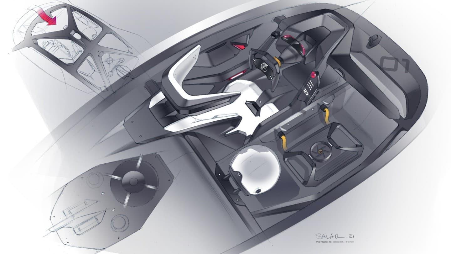De esta forma, Porsche anuncia que su concepto de GT de competición eléctrico sería capaz de completar el 0 a 100 km/h en apenas 2,5 segundos y alcanzar una velocidad punta de 300 km/h, obviamente hablando siempre de en su modo de potencia más extremo que consumiría rápidamente la autonomía que asegura la batería de entre 80-85 kWh de capacidad. El objetivo es que el automóvil pese un total de 1.500 kg y que se comporte casi como un vehículo de motor central gracias a la disposición precisamente de la batería.