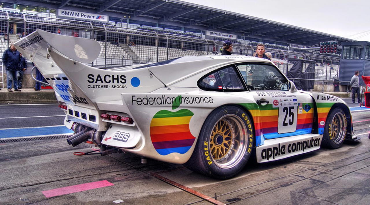 Aquel coche pilotado por Bobby Rahal, Allan Moffet y Bob Garretson mostraba la publicidad de una compañía fundada en 1977 que décadas más tarde se transformaría en un gigante mundial. Garretson sabía que los fundadores de Apple Computer, Steve Jobs y Steve Wozniak, eran seguidores de Porsche, lo que facilitó el patrocinio del coche 935 de un equipo privado en suelo estadounidense y luego en Le Mans. Así que Porsche Penske Motorsport sigue utilizando variantes de libreas relacionadas a Apple ya que previamente en las calles de Long Beach ambos prototipos lucieron la decoración de Apple Music. Estas promociones coinciden con el 75 aniversario de Porsche en el deporte motor y el 50 de Apple en el mercado comercial.