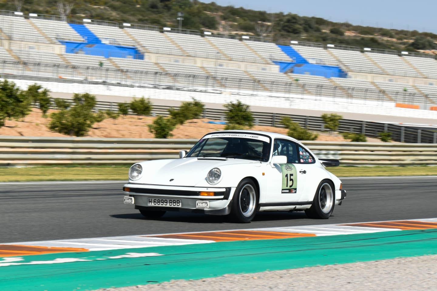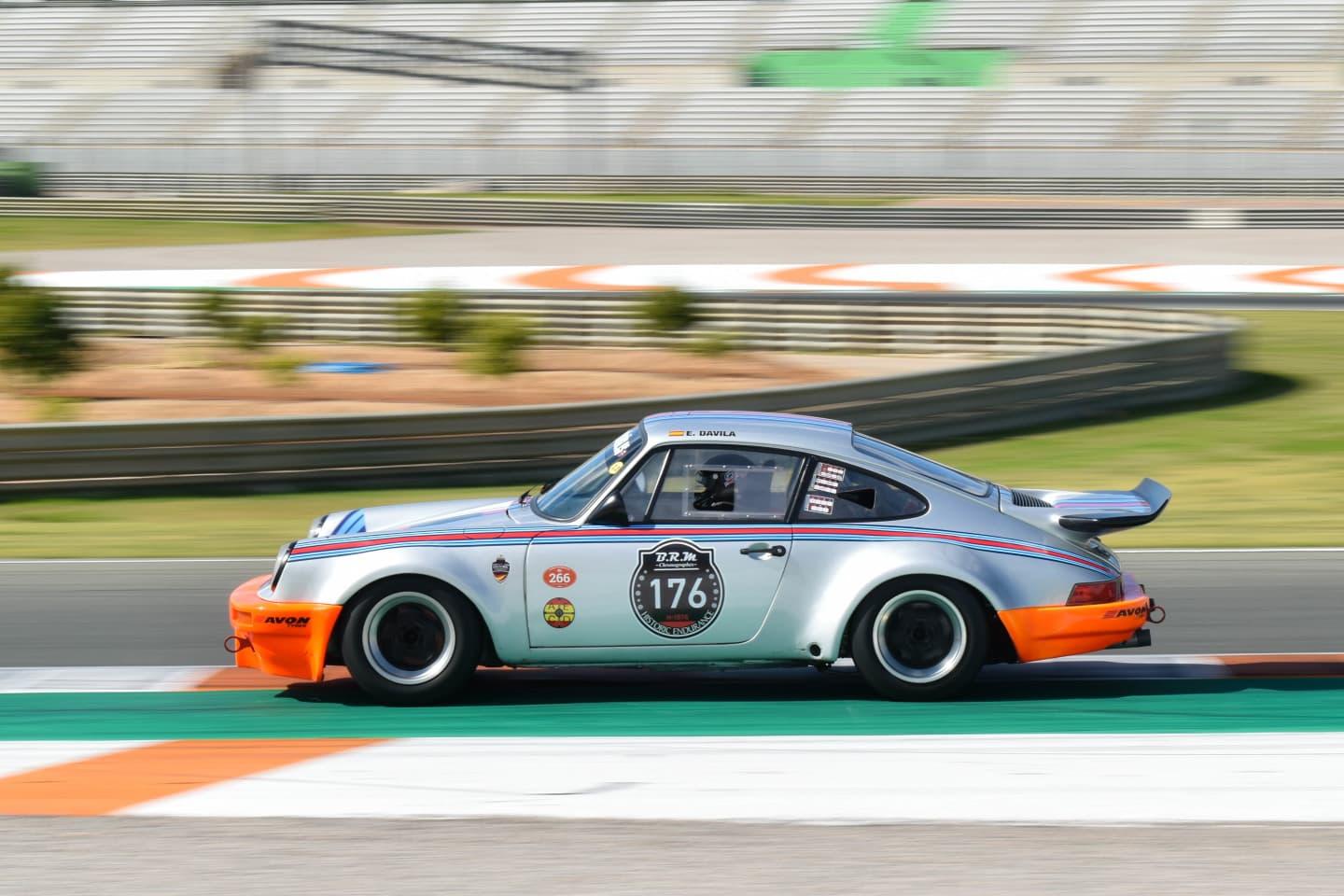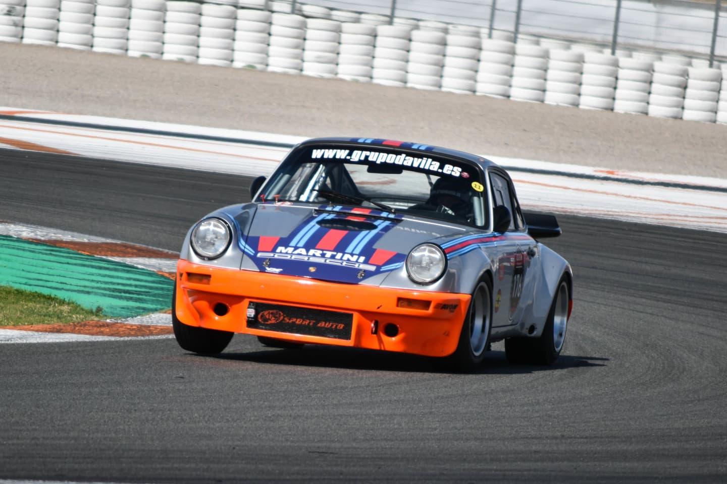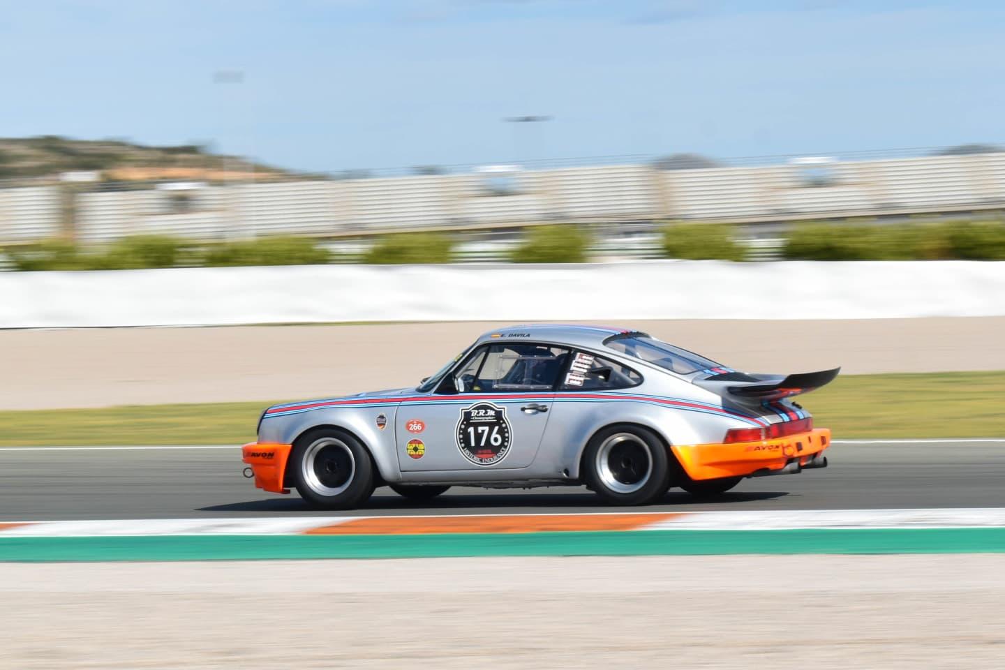 Sin duda uno de los sonidos que transportaron a tiempos pasados a los aficionados asistentes fue el de los cuatro Porsche 911 Carrera 3.0 RS. Con un peso de 900 kilogramos y un motor Flat 6 de 3 litros, sus 230 caballos estaban todavía preparados para luchar y negociar las curvas del trazado valenciano. Con decoraciones clásicas como las de Martini, visualmente los cuatro coches cautivaron también a los asistentes además de posicionarse como los más rápidos detrás del Merlyn mencionado anteriormente. Más versiones del 911 estuvieron presentes, como el caso es el caso del 2.5 ST o del 3.8 RS, que fue el dominador de la categoría M80.