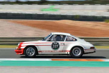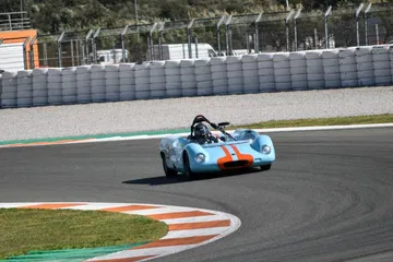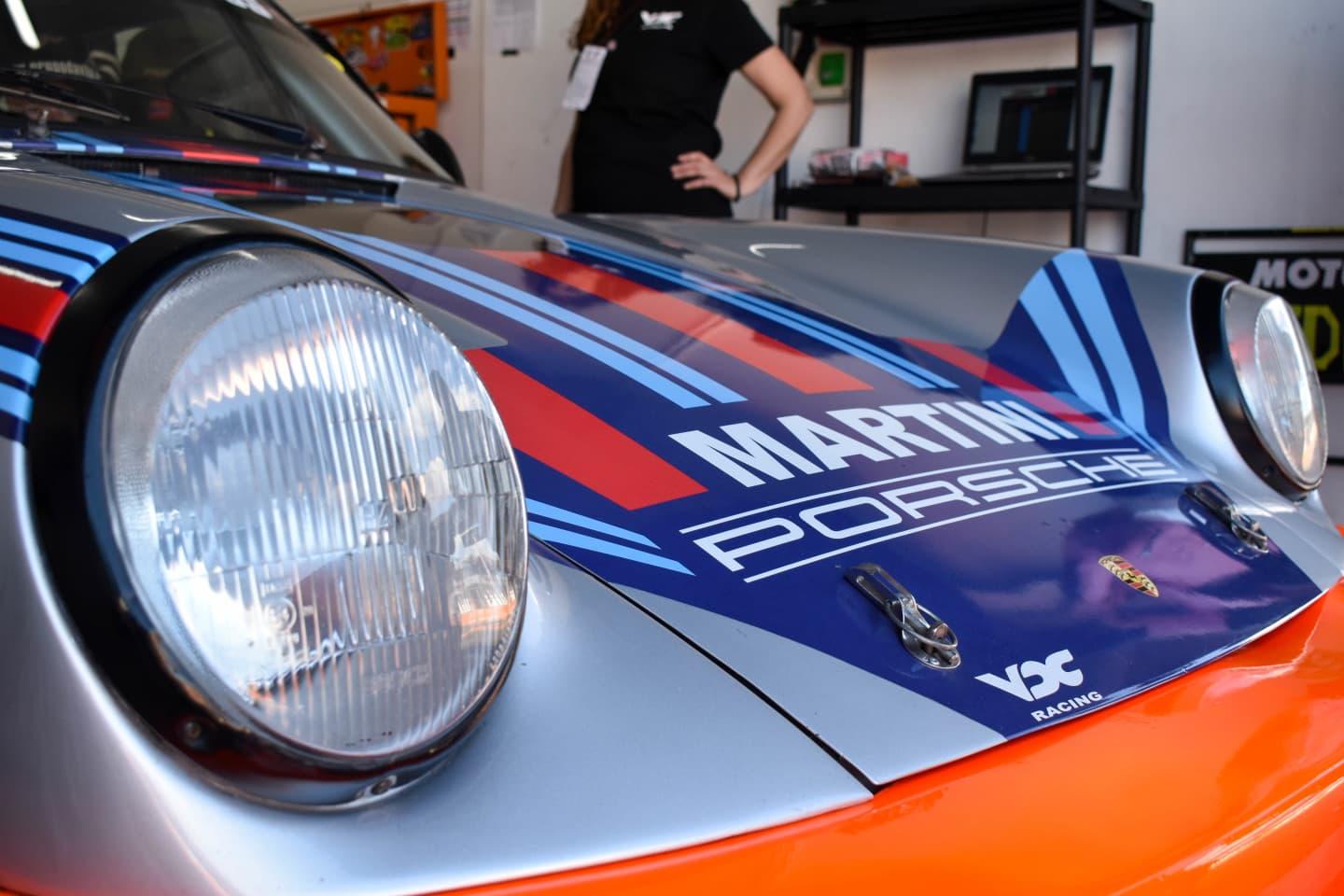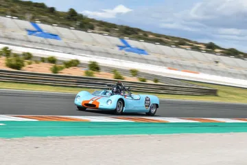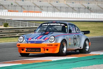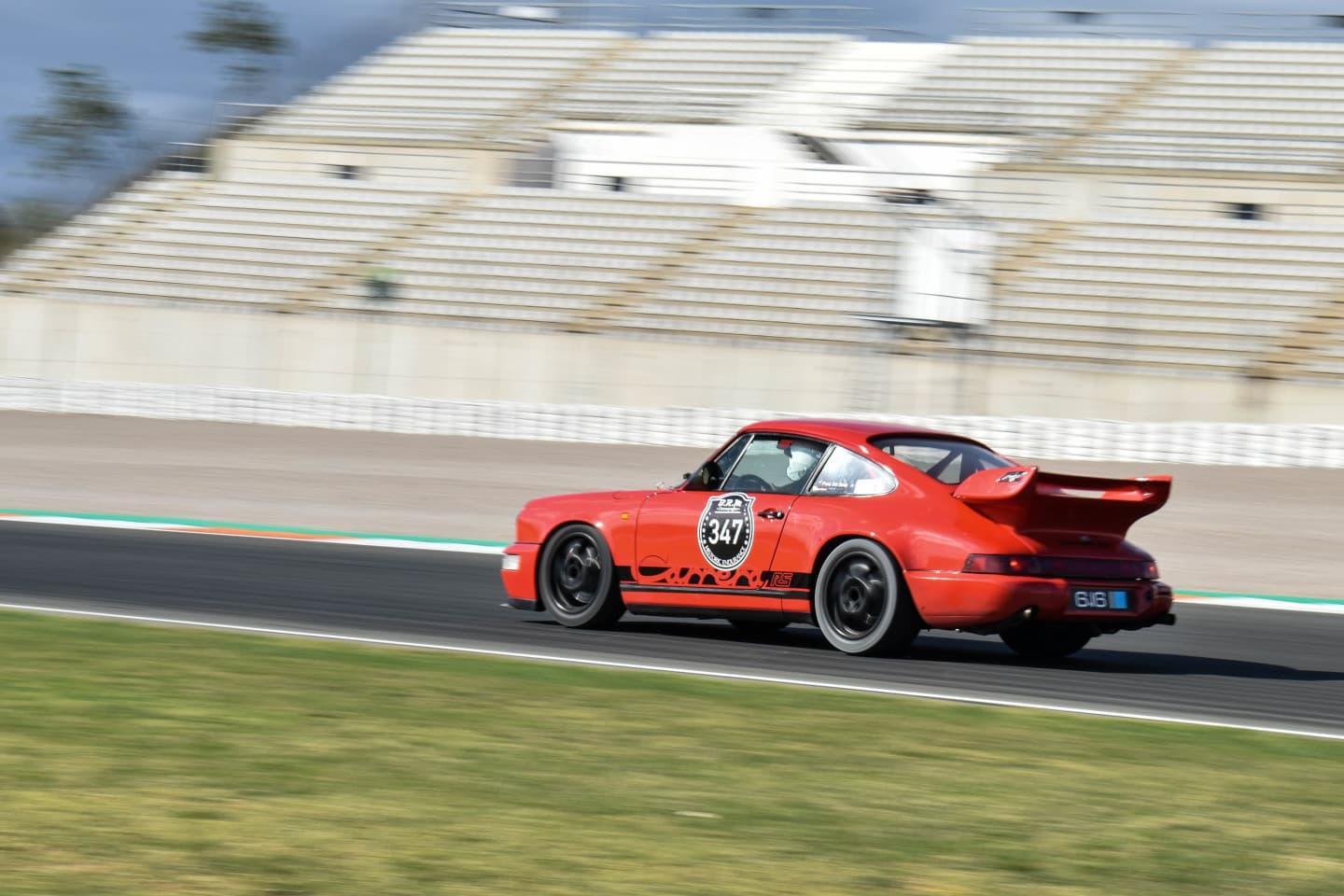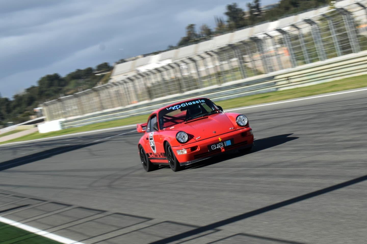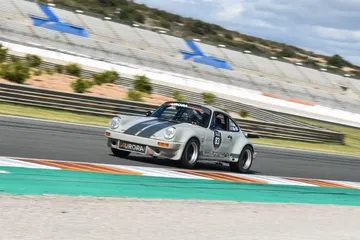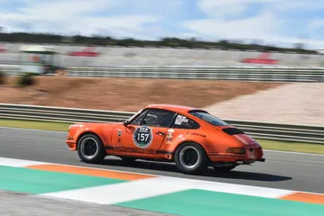 Sin duda uno de los sonidos que transportaron a tiempos pasados a los aficionados asistentes fue el de los cuatro Porsche 911 Carrera 3.0 RS. Con un peso de 900 kilogramos y un motor Flat 6 de 3 litros, sus 230 caballos estaban todavía preparados para luchar y negociar las curvas del trazado valenciano. Con decoraciones clásicas como las de Martini, visualmente los cuatro coches cautivaron también a los asistentes además de posicionarse como los más rápidos detrás del Merlyn mencionado anteriormente. Más versiones del 911 estuvieron presentes, como el caso es el caso del 2.5 ST o del 3.8 RS, que fue el dominador de la categoría M80.