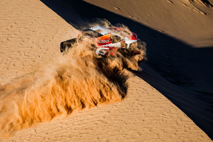 Y es que el sudafricano ya llevaba días agarrándose a la carrera como buenamente podía y la serie de catastróficas desdichas que ha vivido durante esta semana ha tenido como colofón la pérdida de sus opciones de podio este jueves, después de un problema con la suspensión de su Toyota DKR GR Hilux T1+ ha terminado por descartarle por completo y ha permitido a Nani y a Loeb ganar una posición para afrontar los 310 kilómetros de mañana hacia Yanbu todavía con la esperanza de que algún problema de última hora de Nasser pueda permitirles llegar con opciones matemáticas al último día.