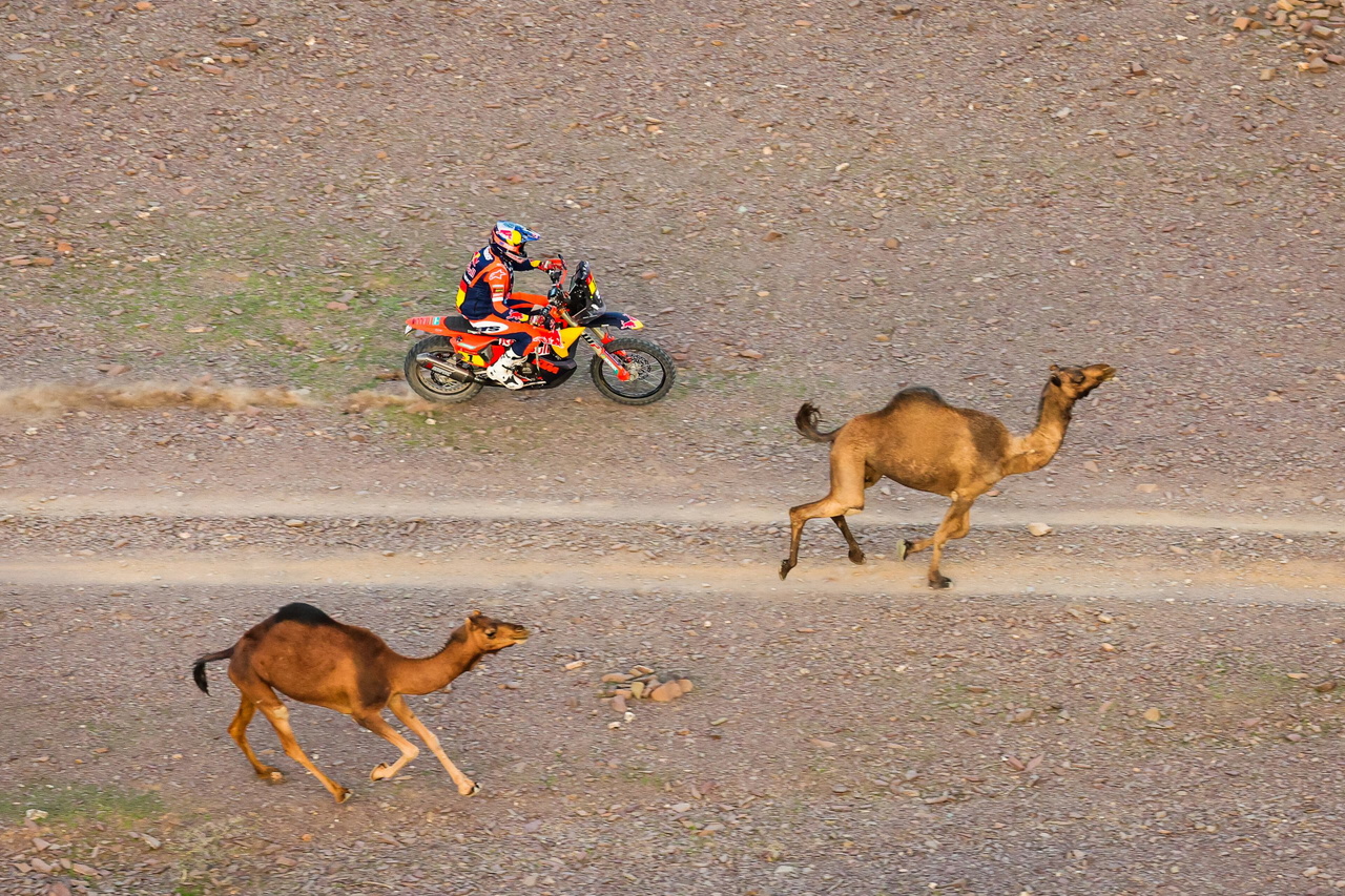 Tras ellos, KTM Factory parece haber optado por una estrategia mucho más cauta con la experiencia de años anteriores en la maratón, buscando mañana tratar de rentabilizar el salir más atrás desde el refugio organizado por ASO para que descansen los competidores esta noche con los justo y necesario para descansar y alimentarse. Esto nos llevó a no encontrarnos a ninguno de los pilotos de la marca de Mattighofen entre los cuatro primeros, algo que estuvo reservado a tres Honda y la Hero de Ross Branch, el cual parece haberse quedado como única gran alternativa al dominio mostrado por HRC y KTM estos días. Por su parte, Canet se dejaba 3:49 en meta, algo que le lleva a dar un paso atrás en la clasificación, estando más cerca Luciano Benavides de alcanzarle, ambos ya por encima de los 10 minutos perdidos respecto a la cabeza.