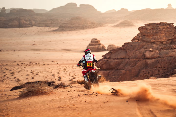 El motard valenciano ha demostrado tener mucha velocidad y aunque le ha tocado abrir pista, ha conseguido mantenerse al frente del grupo, acumulando segundos de bonus y reclamando de esta forma su segunda victoria de etapa consecutiva que lo ha llevado a situarse al frente de la clasificación general de motos, curiosamente empatado a tiempo con su compañero en la firma del ala dorada, Ricky Brabec, el cual partía segundo en el orden de salida de este 7 de enero.