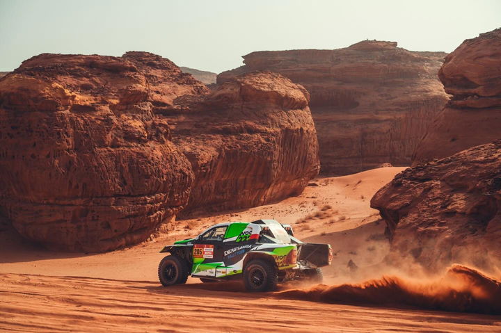 Y es que en el kilómetro 234 de los 452 de los que se componía la sección competitiva de hoy, el defensor del tuareg, Yazeed Al-Rajhi y su copiloto, Timo Gotschalk, decían adiós a la carrera después de sufrir dos pinchazos en el inicio de la etapa. Tras esperar a Quintero para que este les cediera un neumático más, tuvieron un nuevo pinchazo lo que ya les llevó a tomar la decisión de abandonar. A través de su equipo se informaba que se trataba de una retirada definitiva de la carrera, por lo que no se reengancharán tras decidir “no asumir ningún riesgo para la salud y seguir centrándose en una recuperación completa de las lesiones de la temporada pasada, con el fin de evitar cualquier riesgo potencial dada su condición médica actual”.